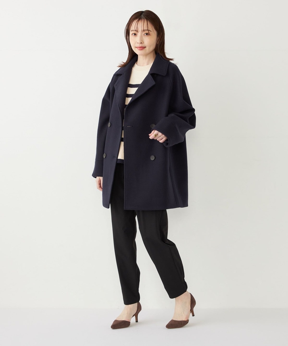 ニットやデニムと合わせたカジュアルスタイルはもちろん、通勤シーンにもマッチする万能アウターです。