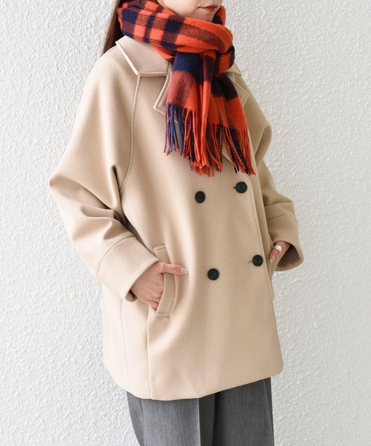 メルトン見えする、暖かみのある生地感。