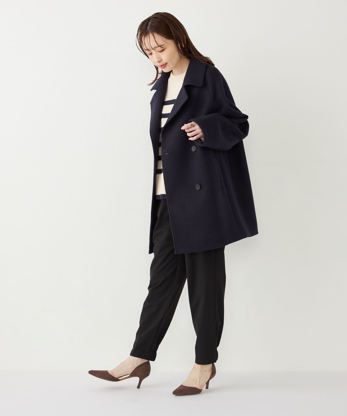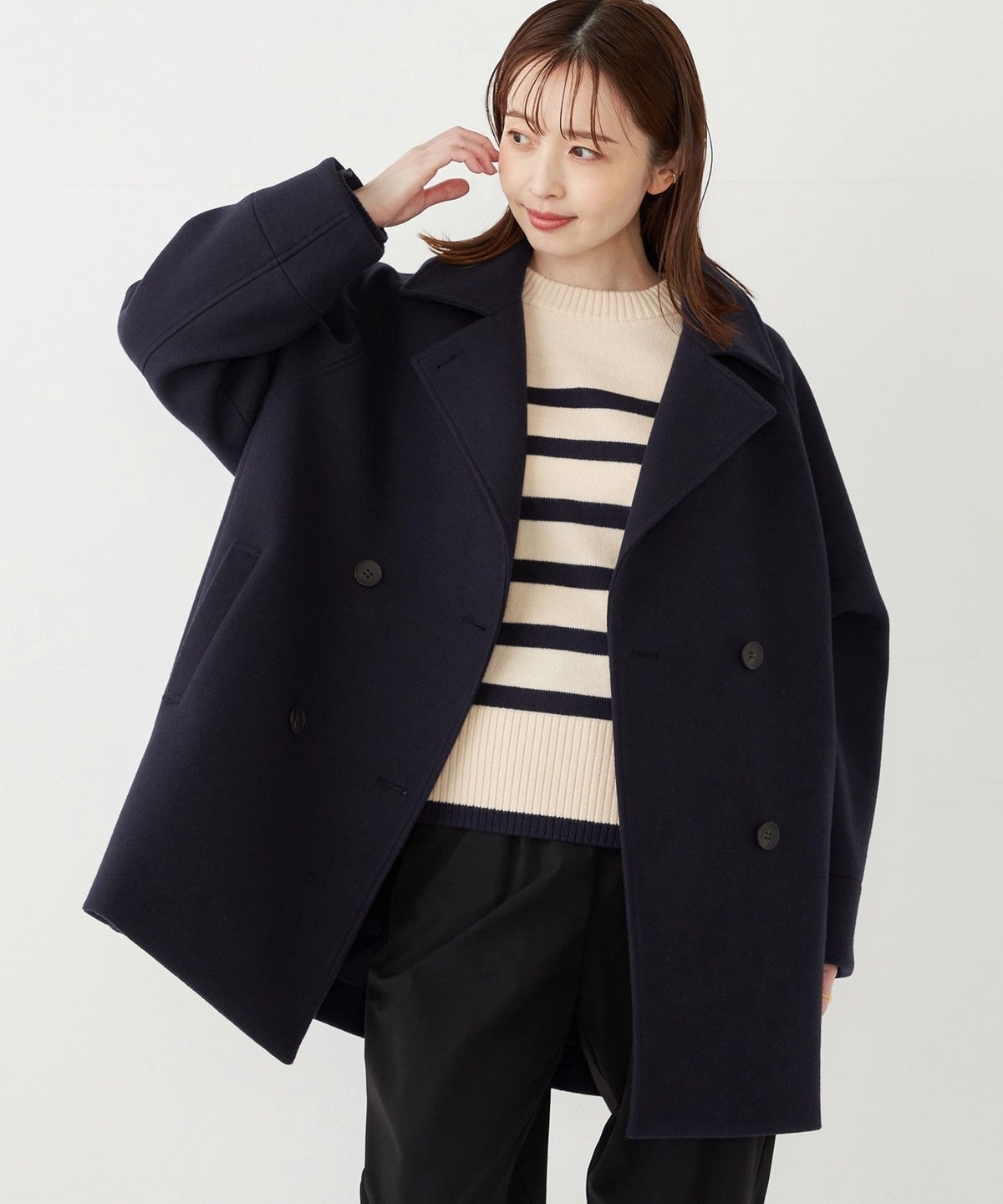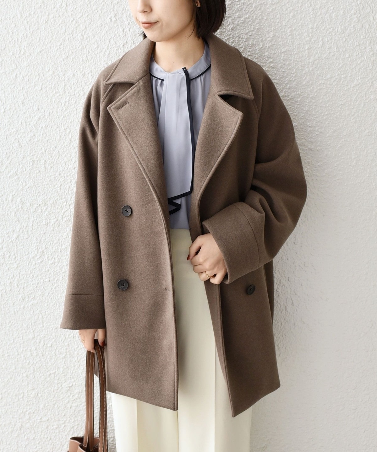 ドロップショルダーやコクーンシルエットで、程よく抜け感のある着映えコート。