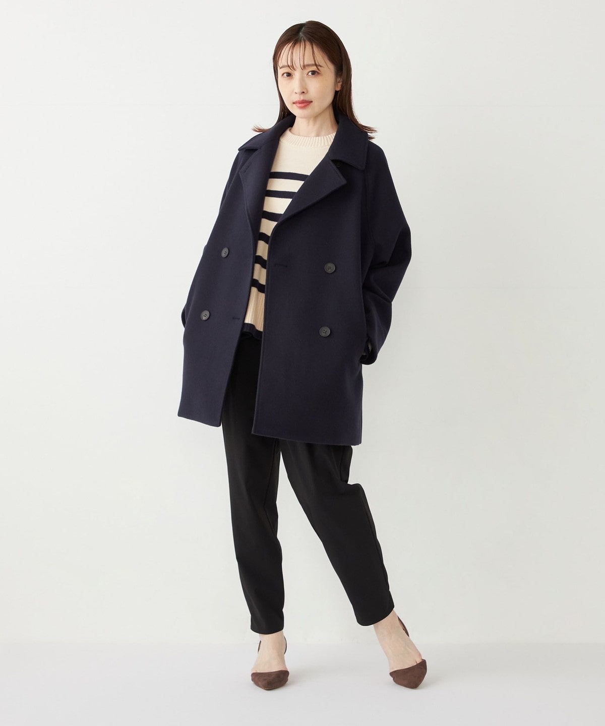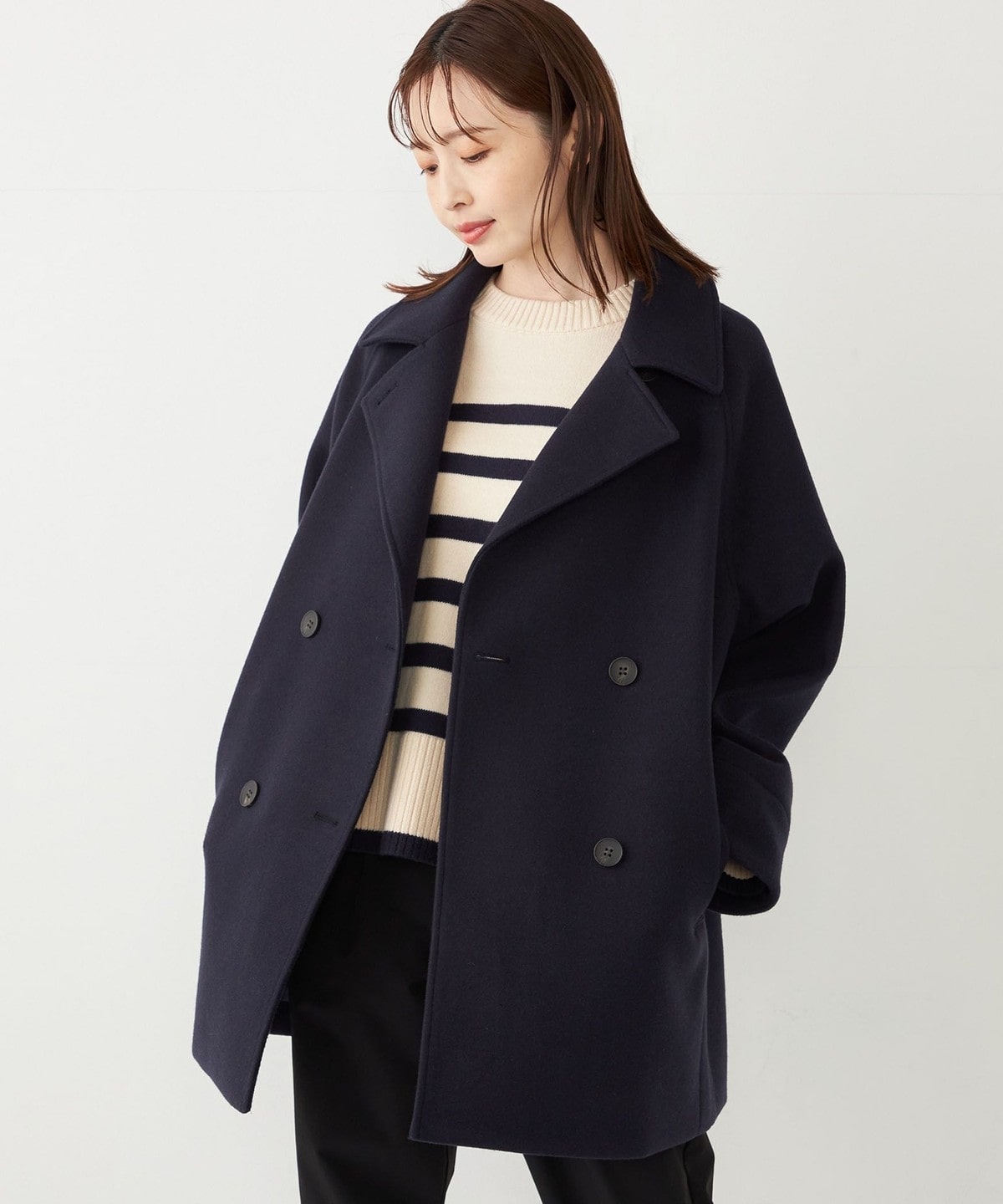 SHIPS Colors:〈手洗い可能〉ジャージーメルトン ピーコート 2◇