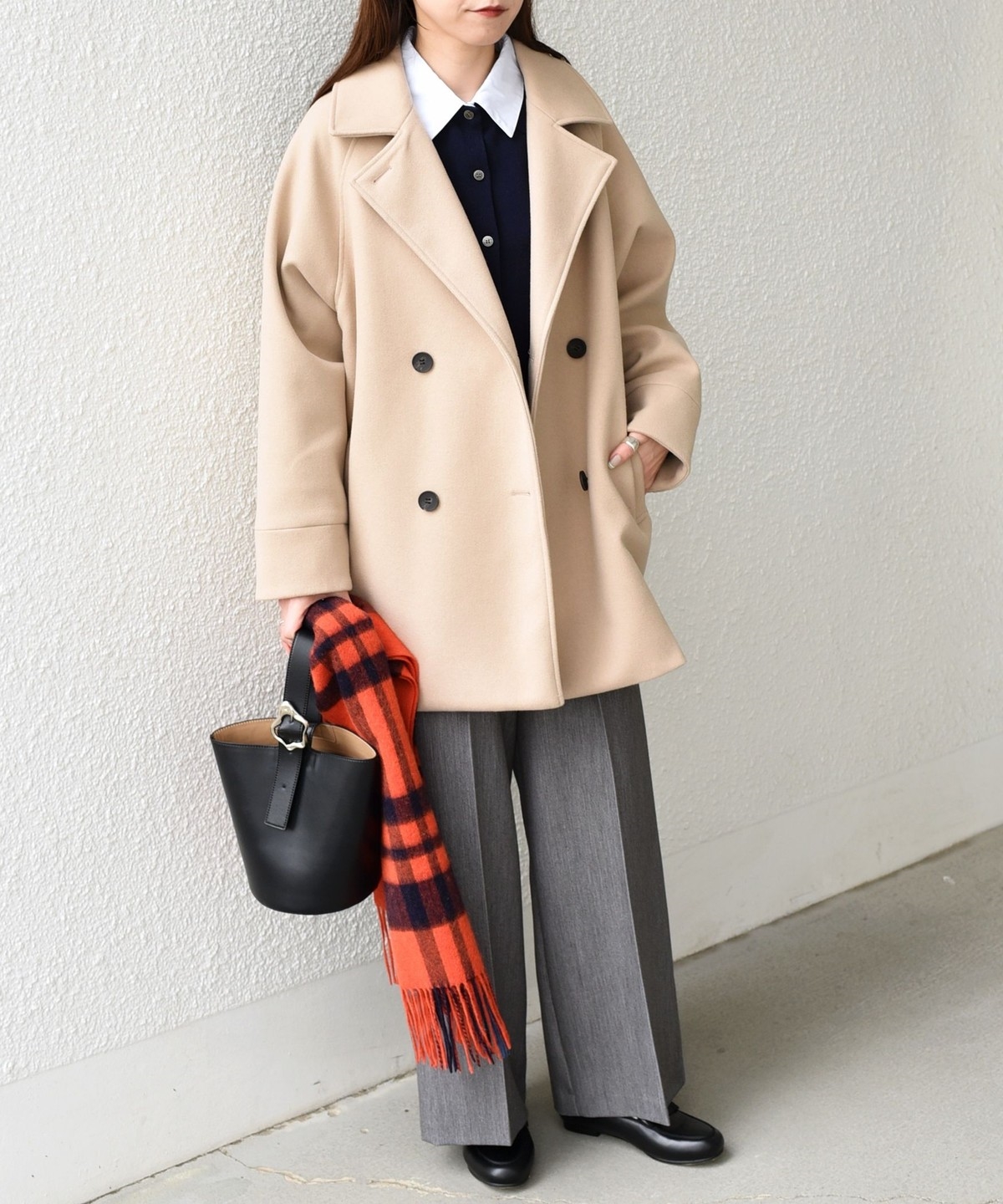 ニットやデニムと合わせたカジュアルスタイルはもちろん、通勤シーンにもマッチする万能アウターです。