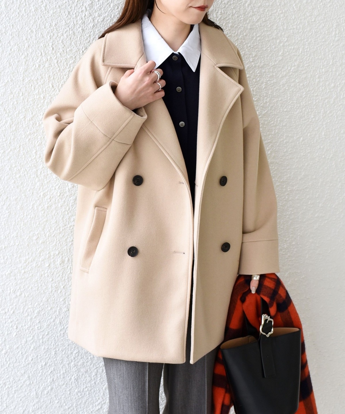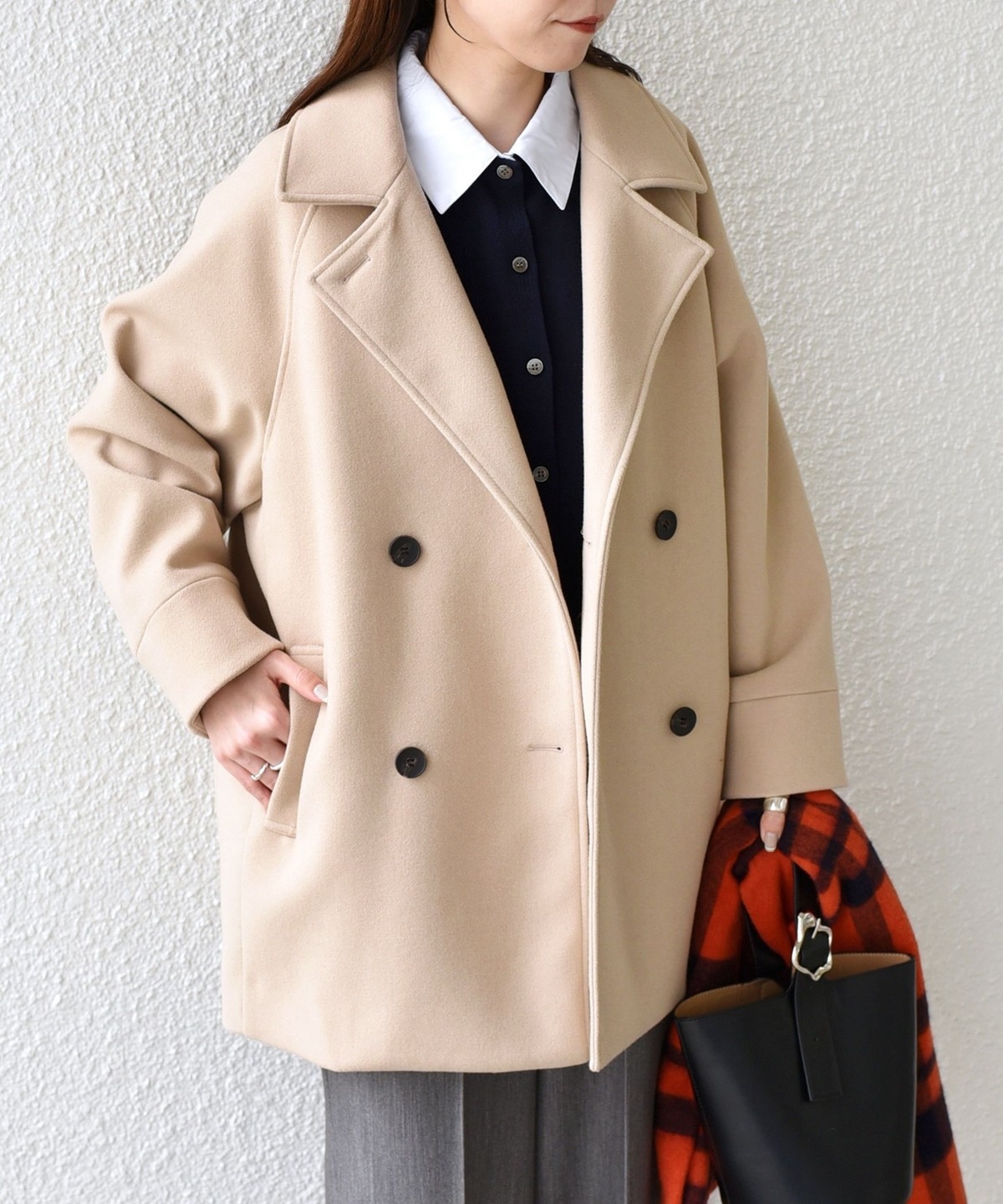 ドロップショルダーやコクーンシルエットで、程よく抜け感のある着映えコート。