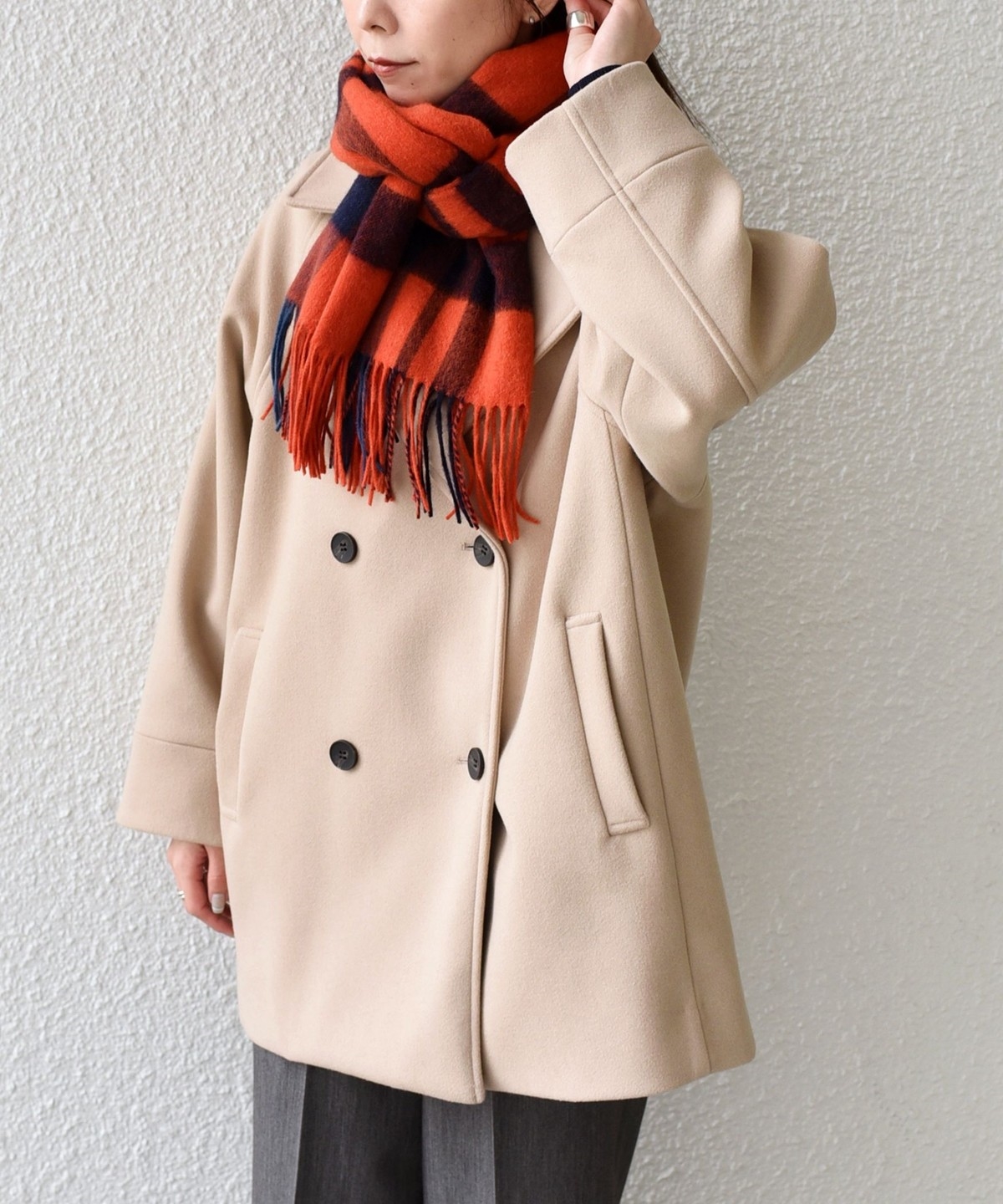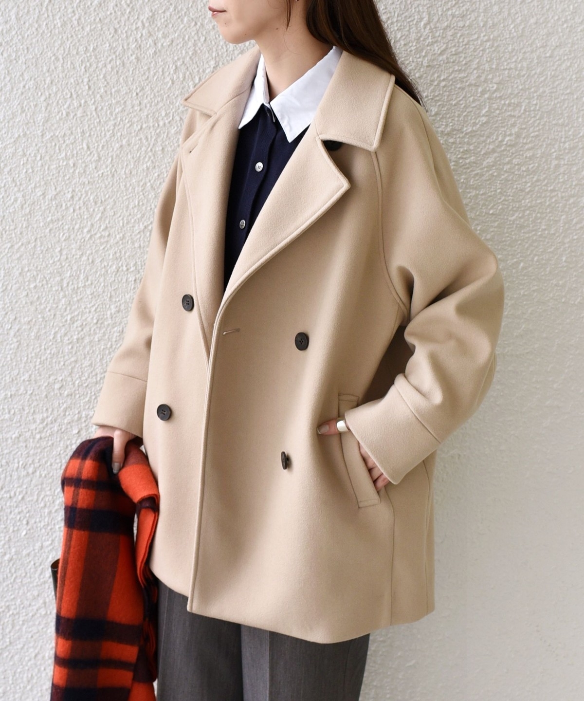 メルトン見えする、暖かみのある生地感。