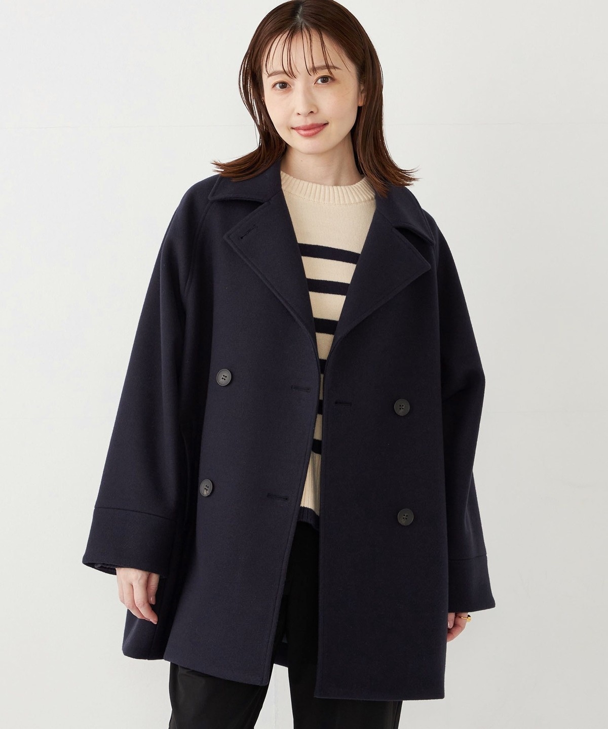 SHIPS Colors:〈手洗い可能〉ジャージーメルトン ピーコート 2◇