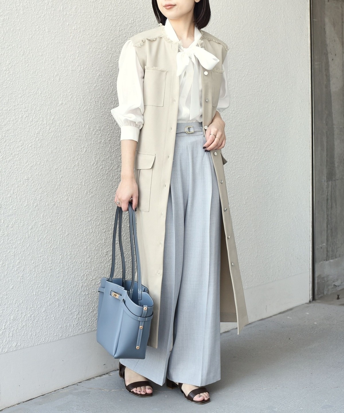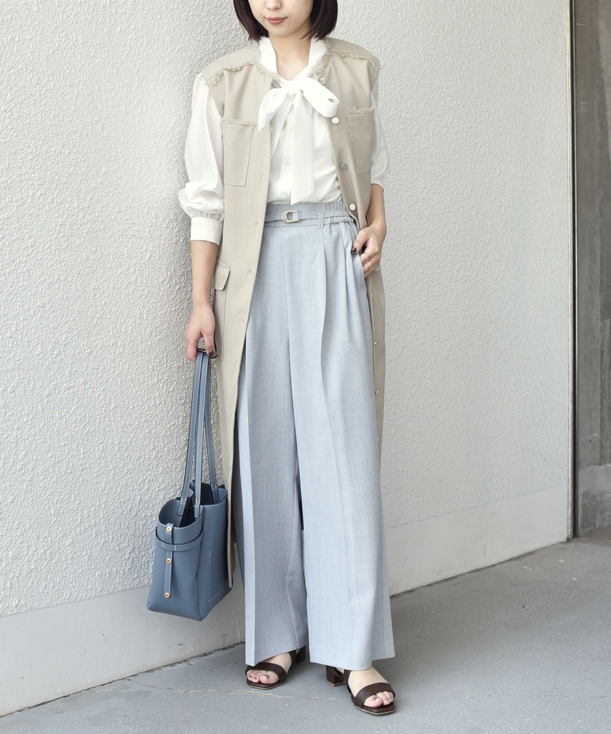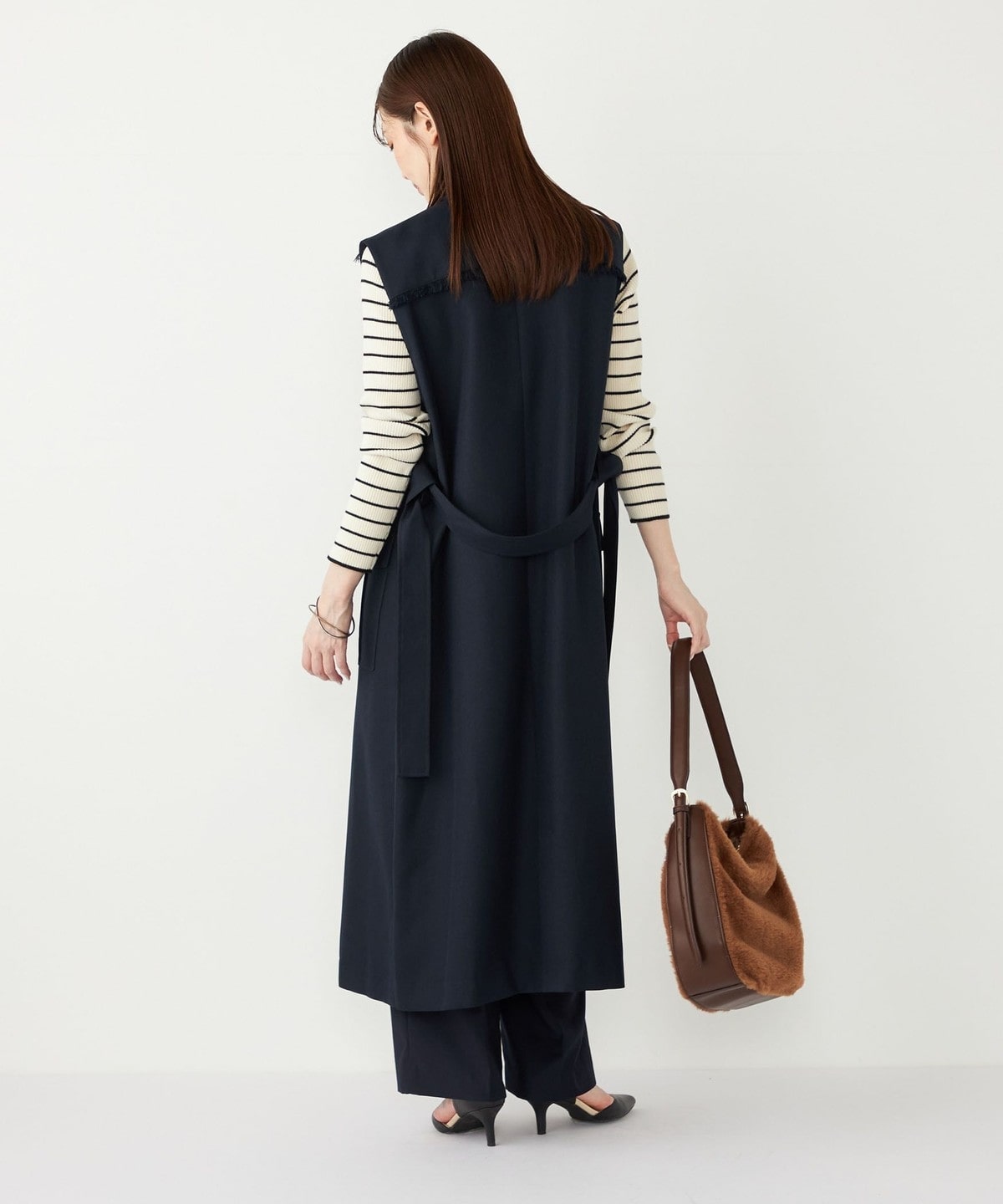 前を開けてジレとして羽織っていただくと、普段のコーディネートを新鮮な印象にアップデートしてくれます。