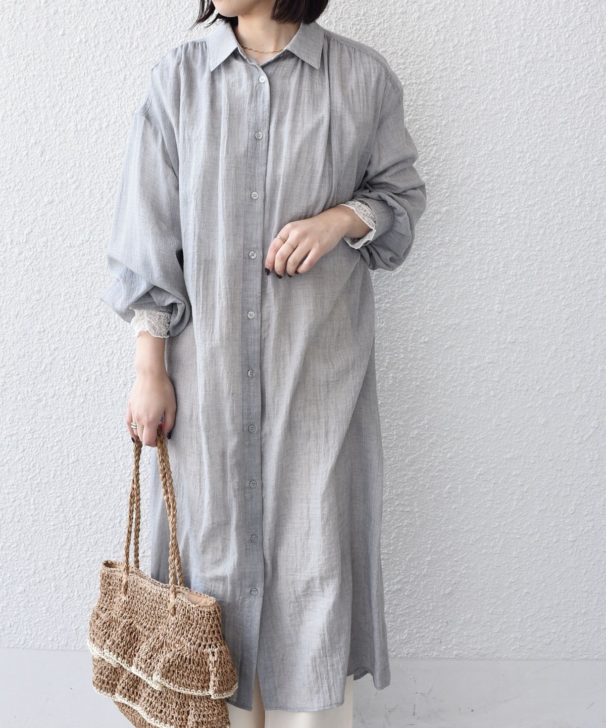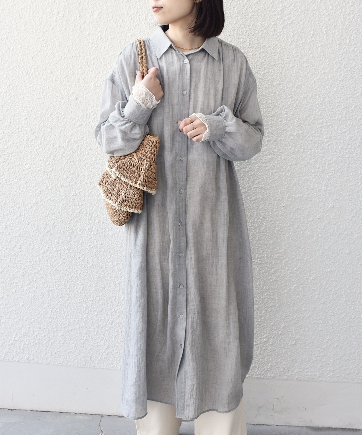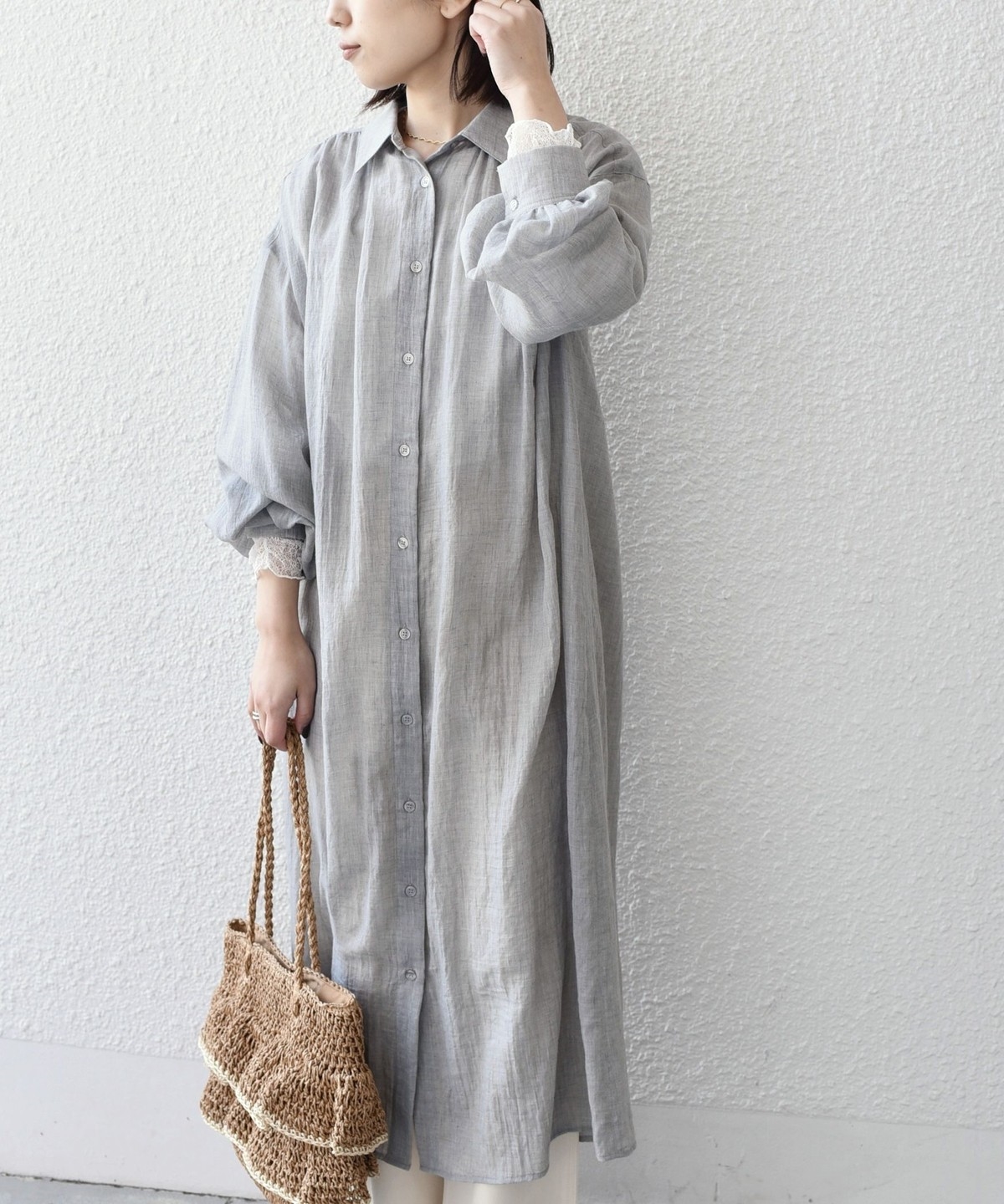 春夏らしい軽やかなボイル素材のシャツワンピース。
