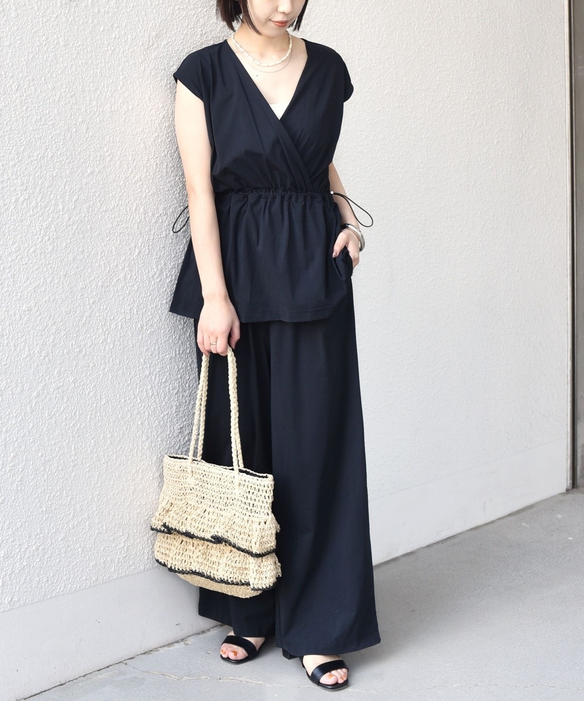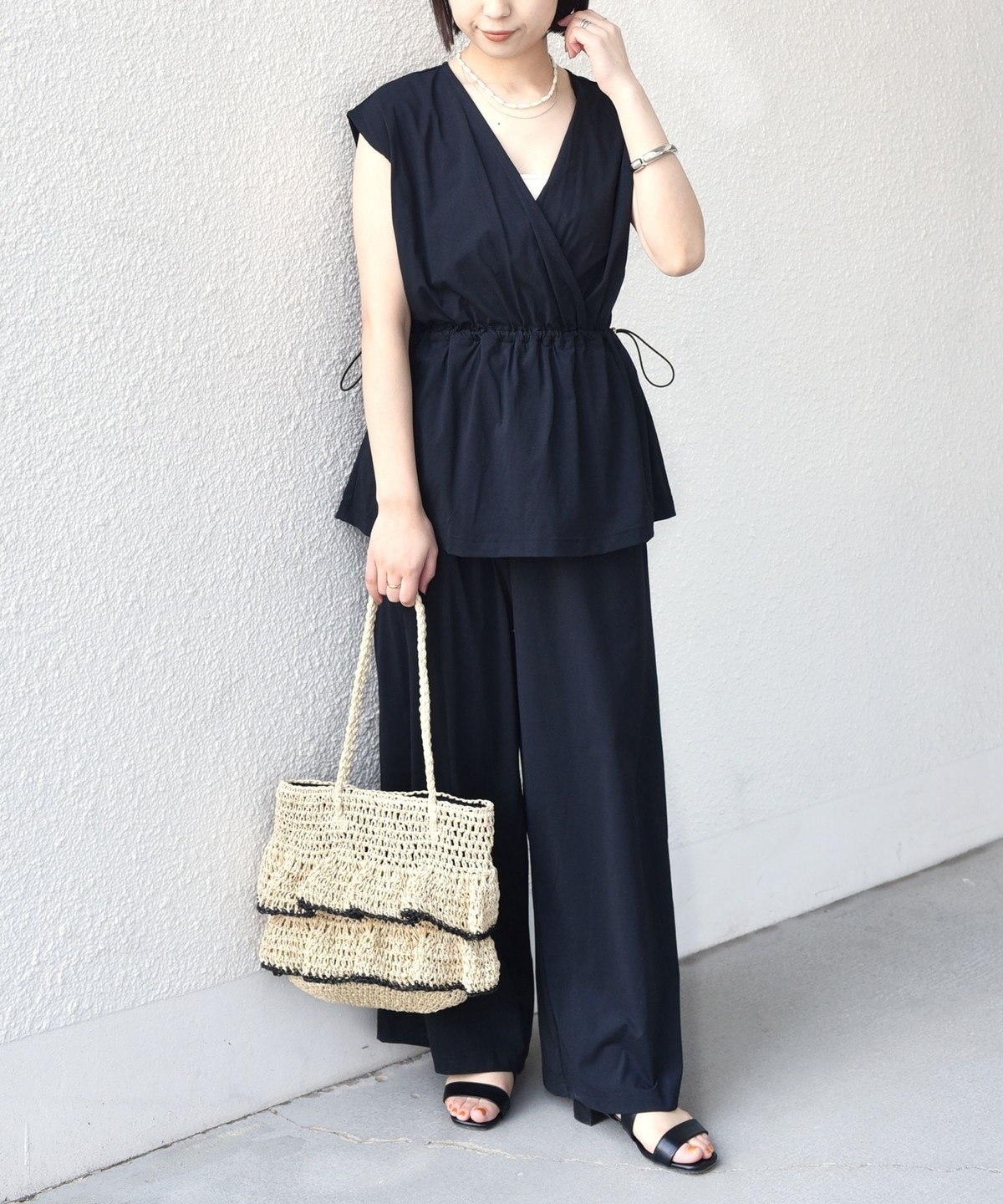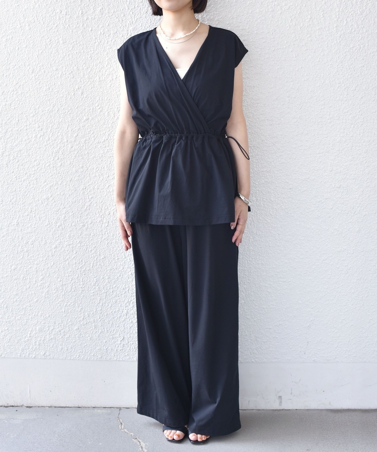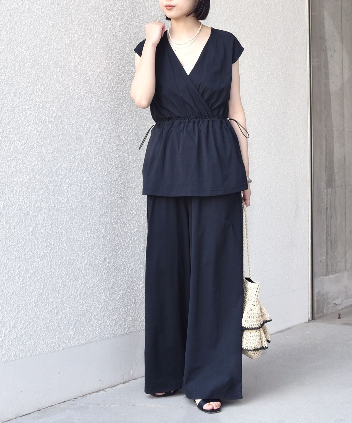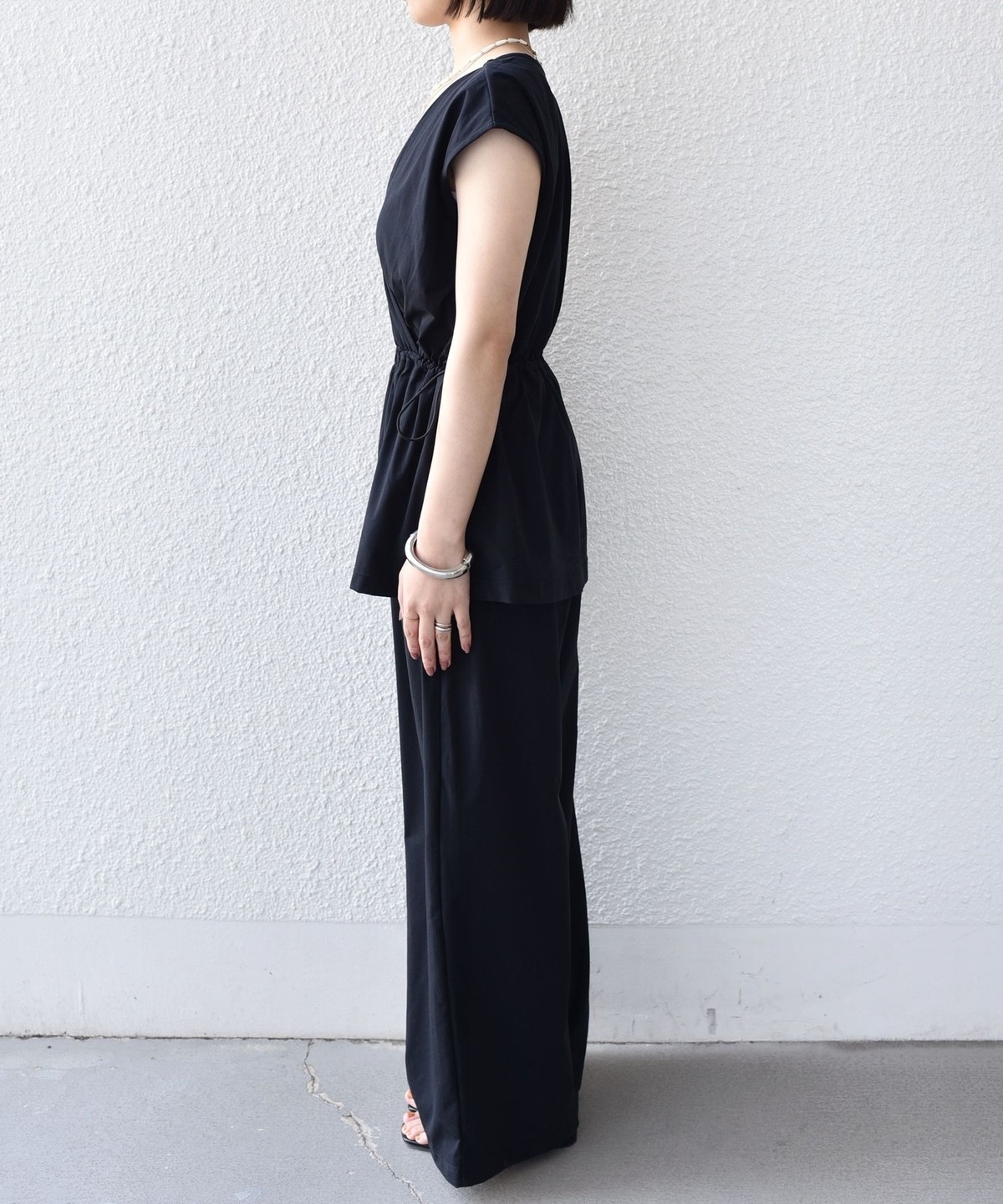 ウエストはドロスト付きのペプラムシルエットで、快適な着心地ながらもメリハリのある印象に仕上げてくれます。