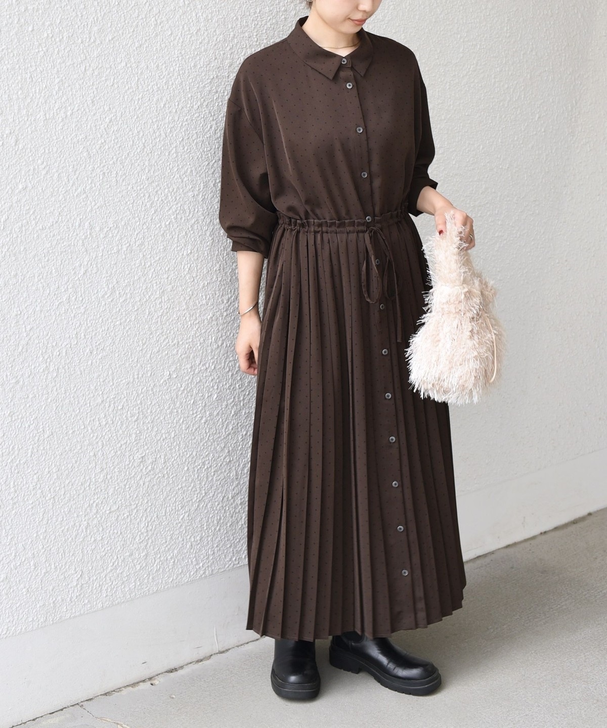細かなドット柄で、程よい存在感と、取り入れやすさを兼ね備えています。
