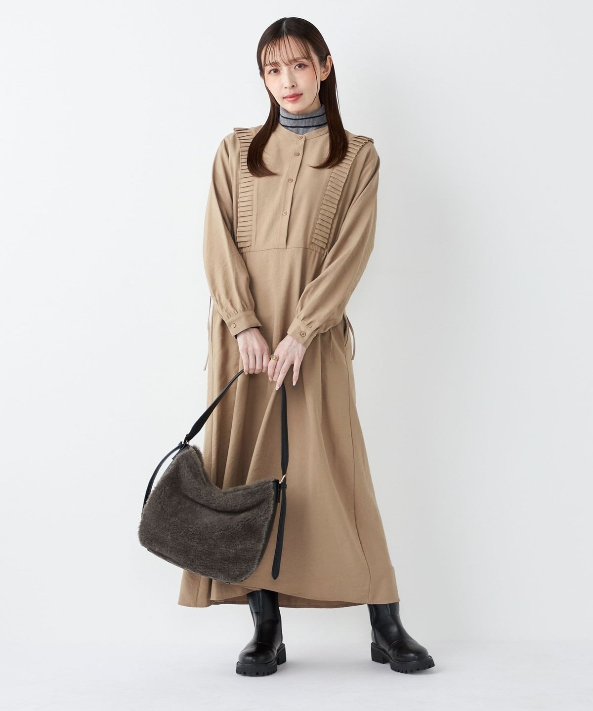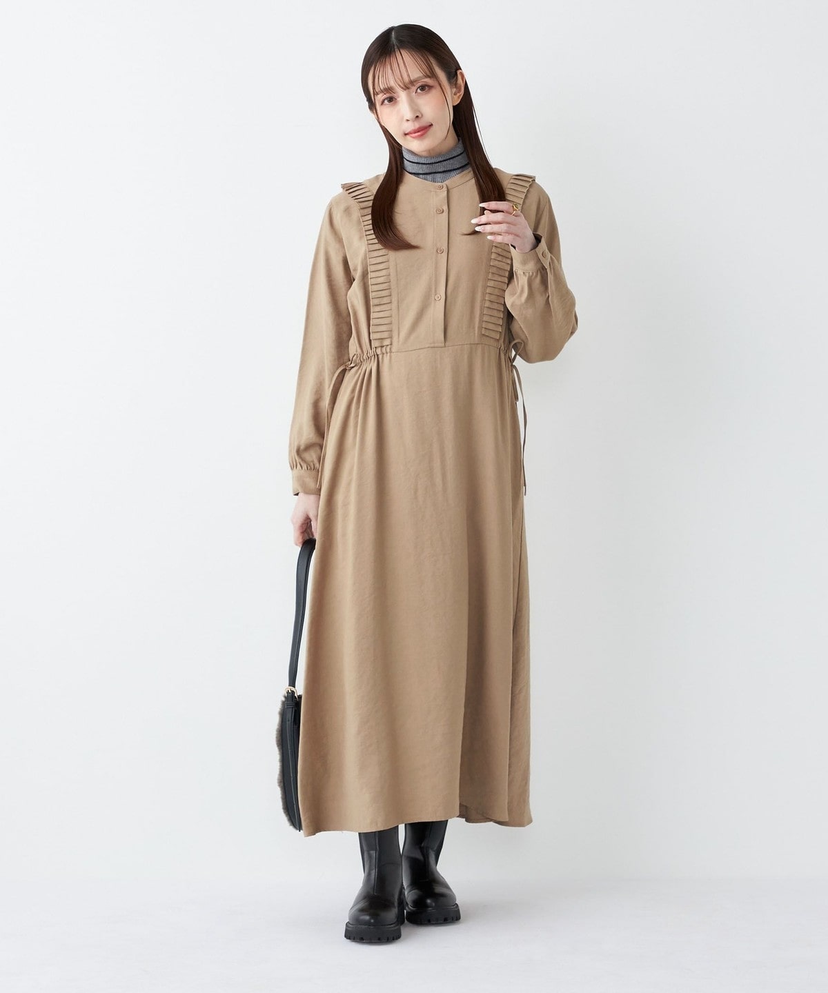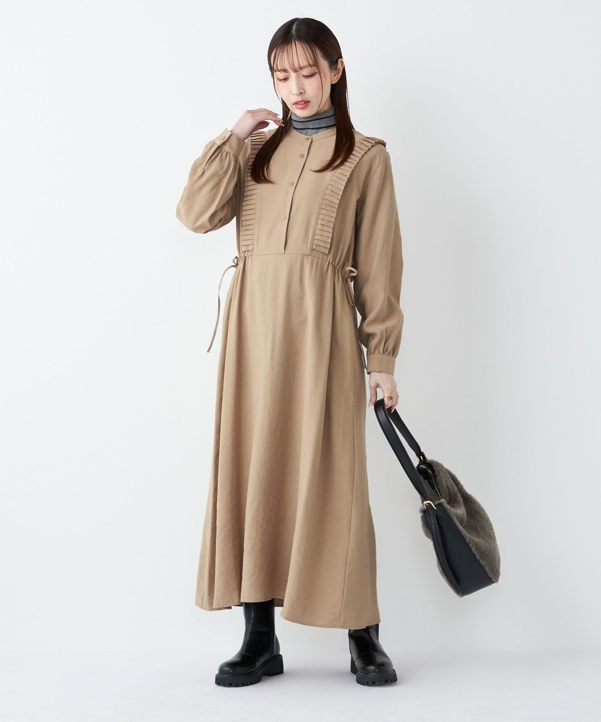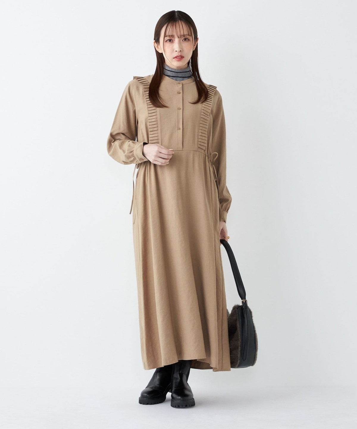 SHIPS Colors:〈手洗い可能〉プリーツ デザイン ロングスリーブ ワンピース◇