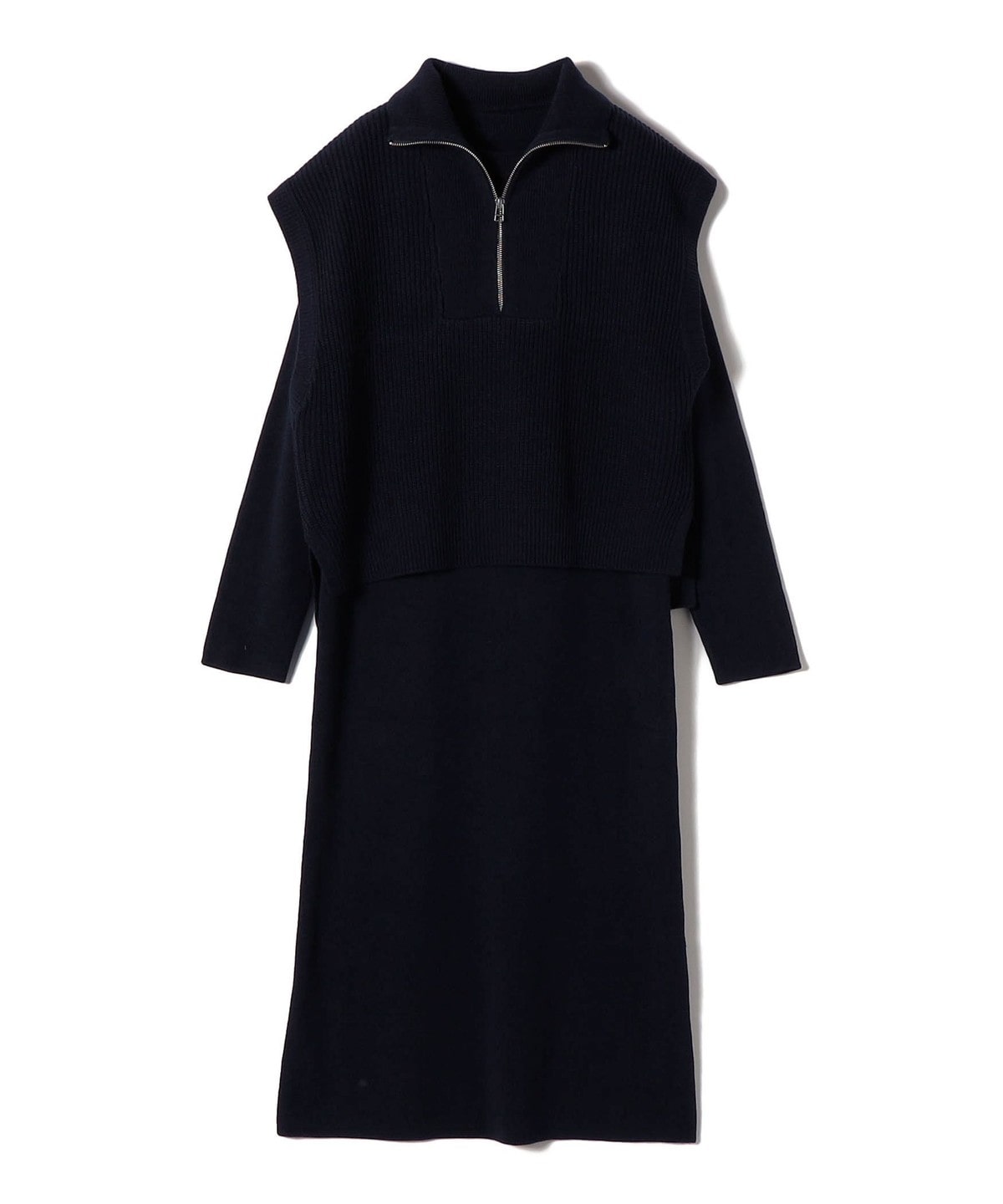 1. SHIPS Colors:〈手洗い可能〉ベスト × ニット ワンピース セット◇ ネイビー