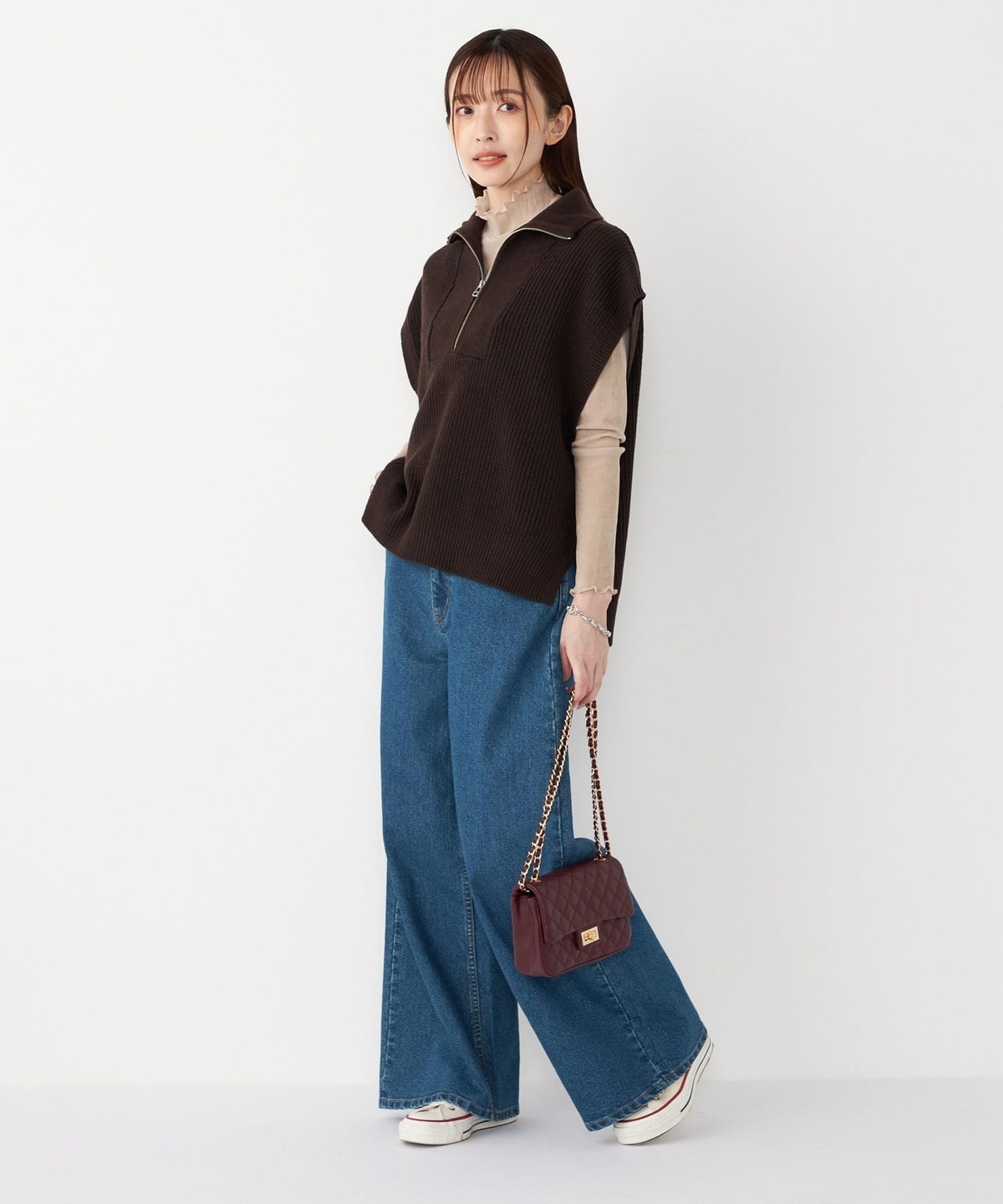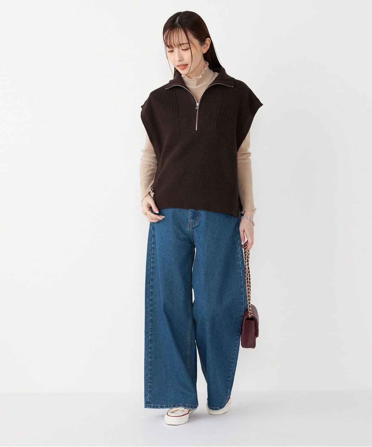 ベストはカットソーやタートルネックを重ねて、デニムでカジュアルに着こなしても◎