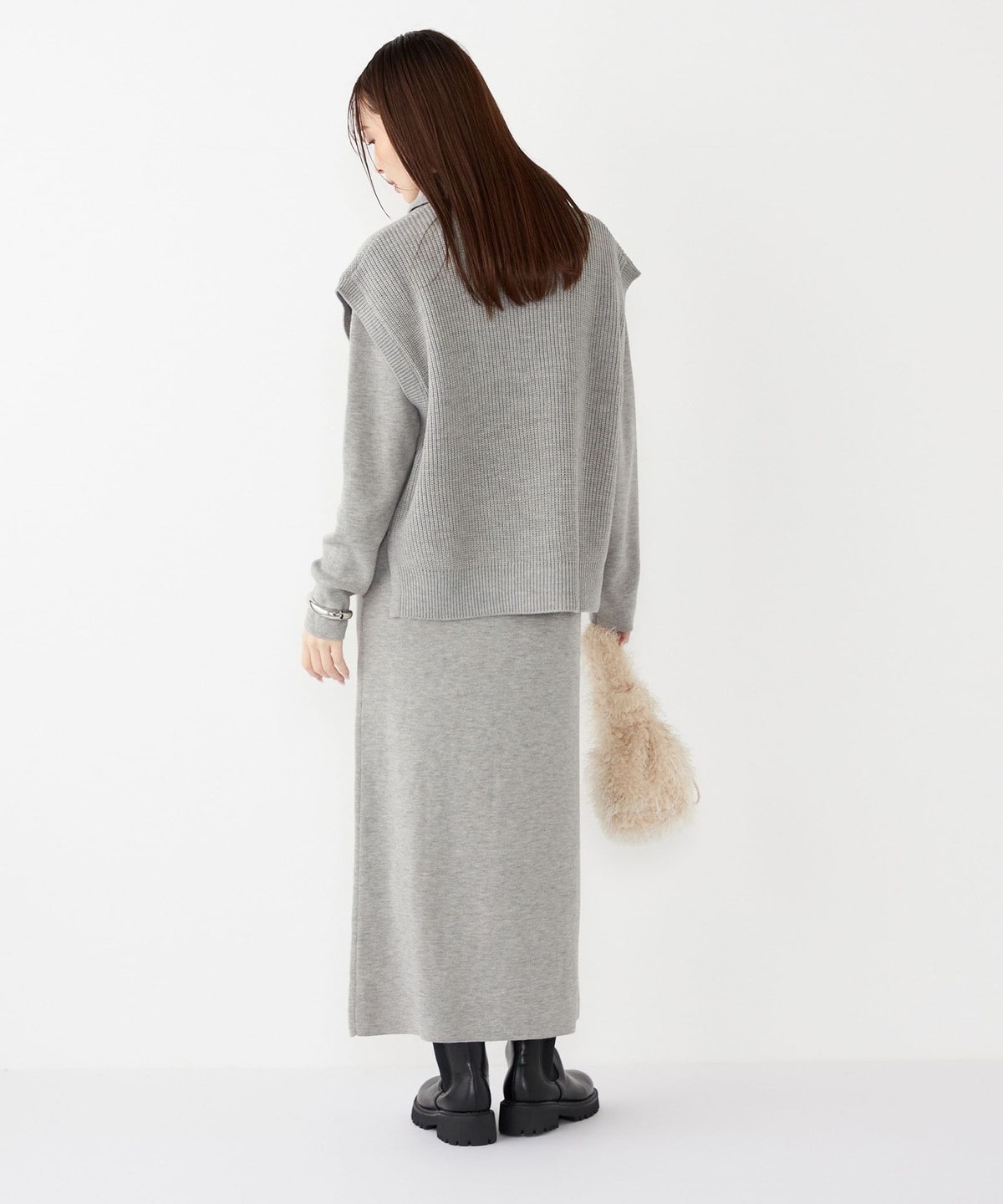 2. SHIPS Colors:〈手洗い可能〉ベスト × ニット ワンピース セット◇ グレー