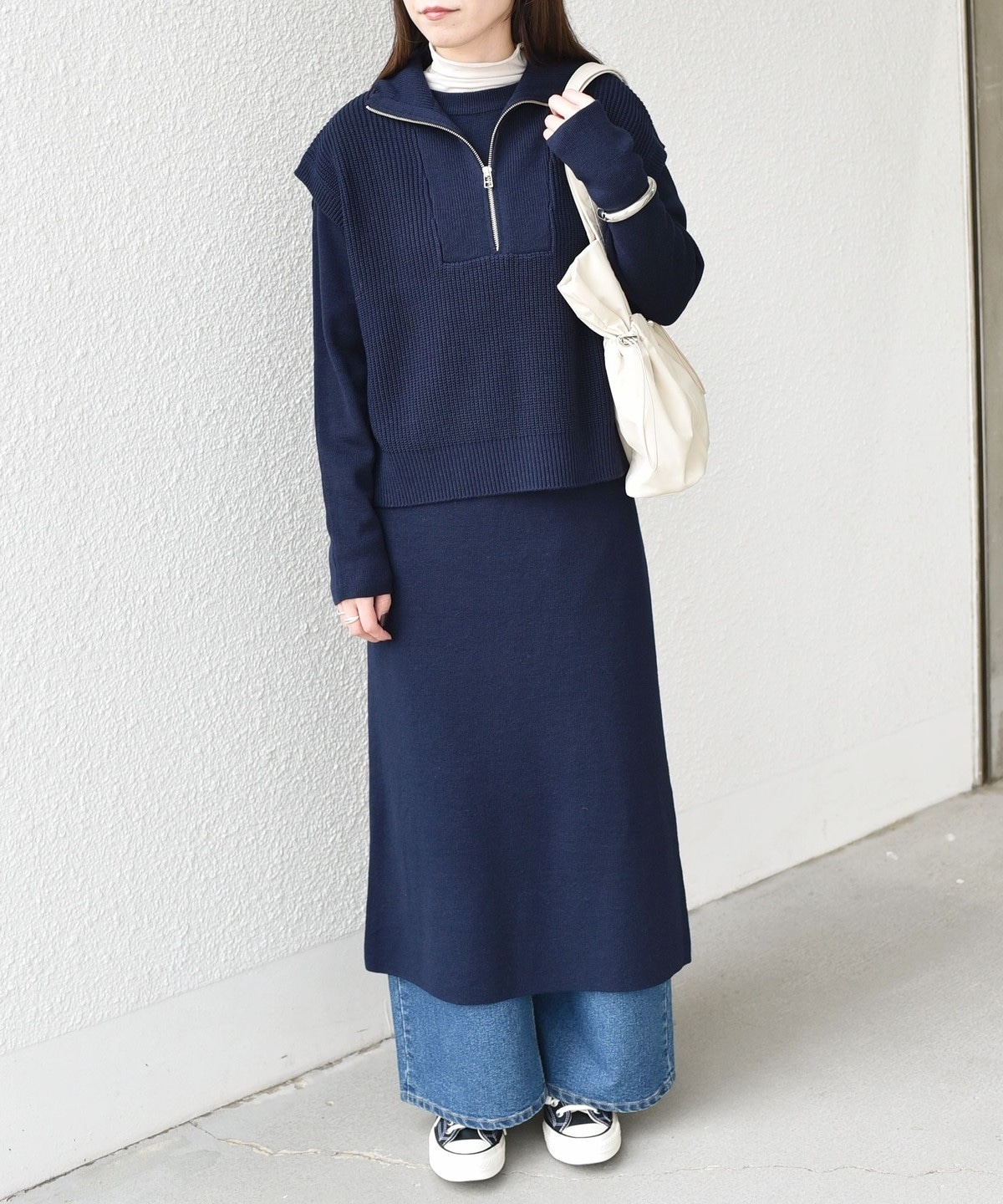 コーデが簡単に決まる、ベスト×ニットワンピースのセット。