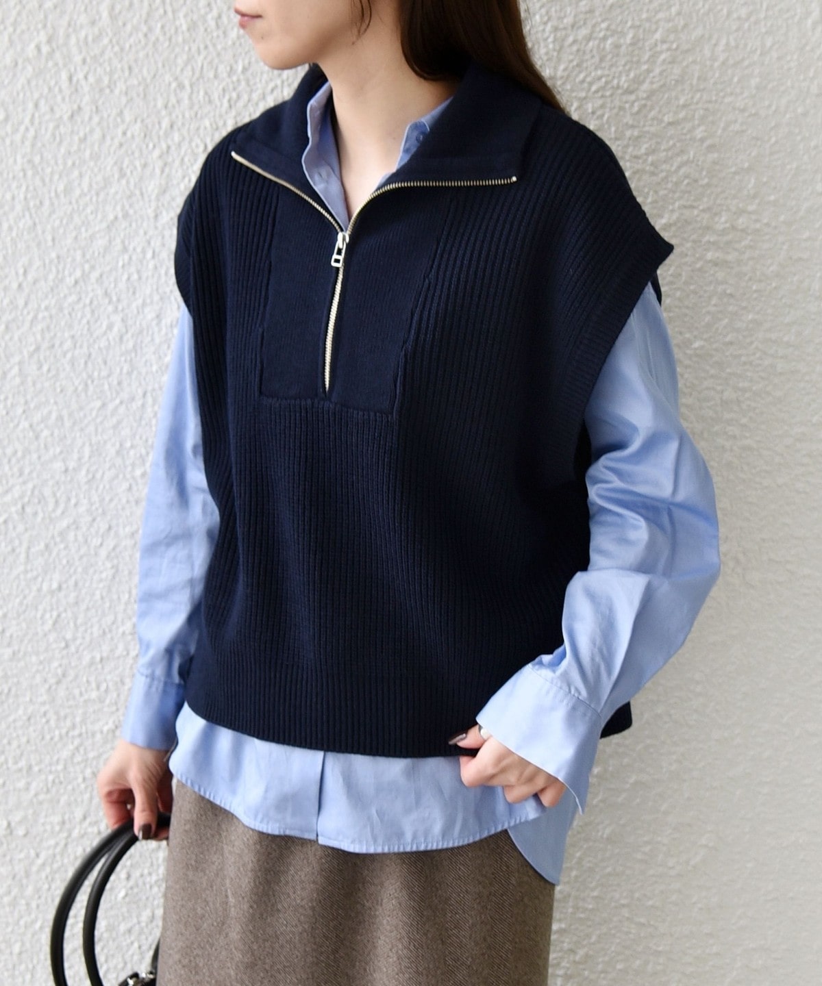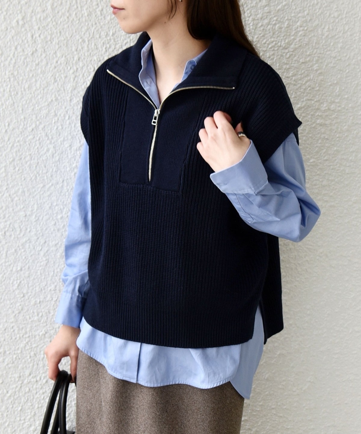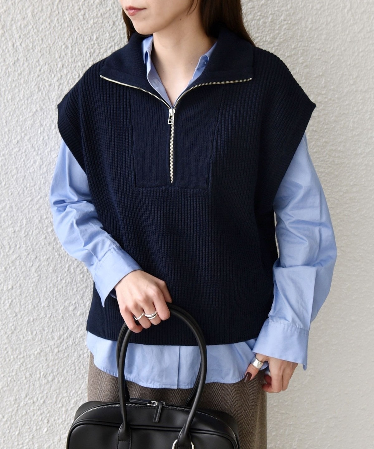 ベストはフロントのハーフジップ仕様で、開け閉めよって表情の変化を楽しめます。