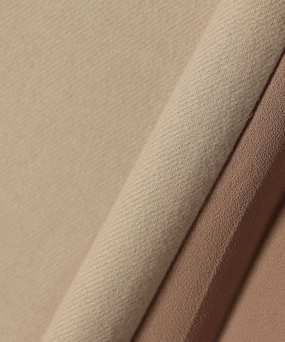 素材:本体(ポリエステル74%、レーヨン25%、ポリウレタン1%)別布(ポリエステル100%)裏地(ポリエステル100%)