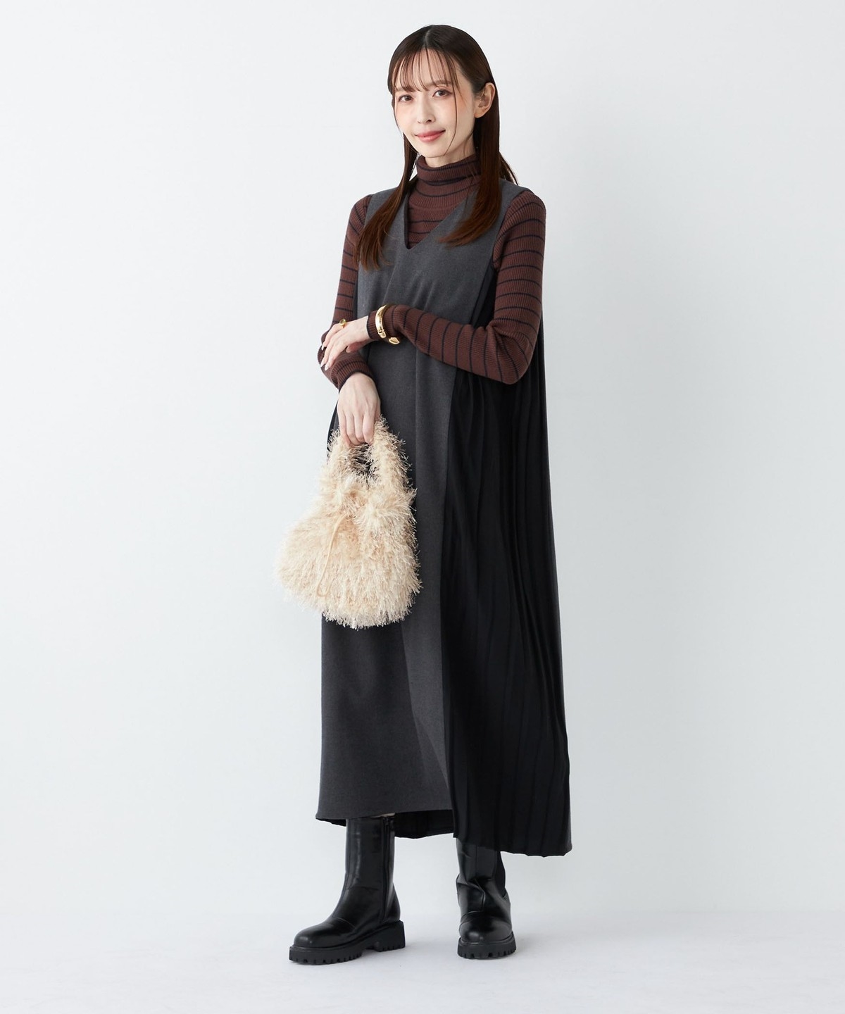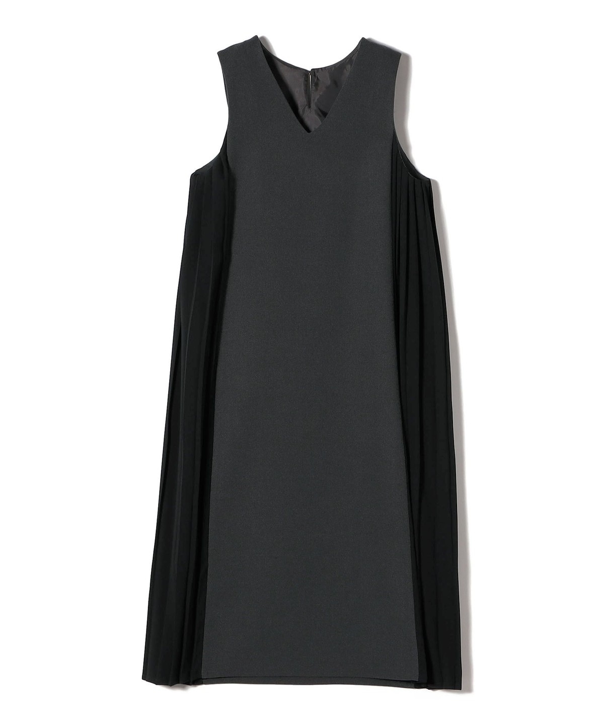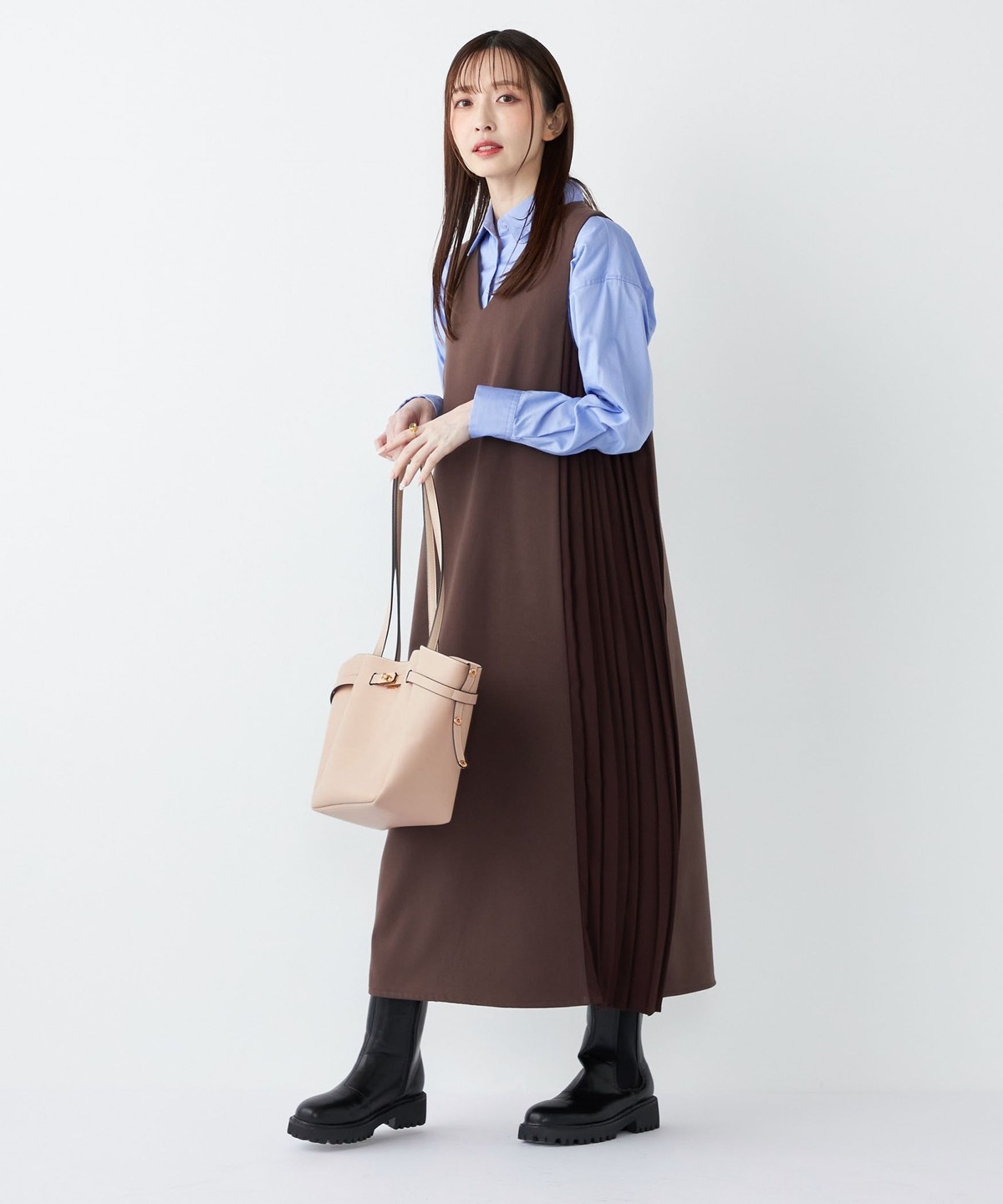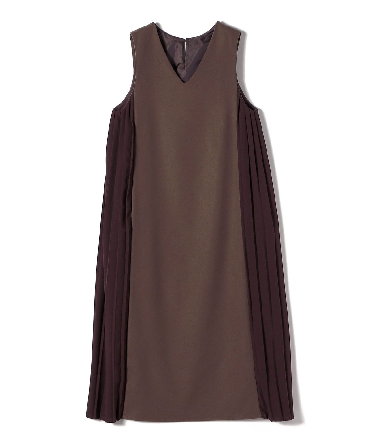 サイドにプリーツをドッキングしたジャンパーワンピース。