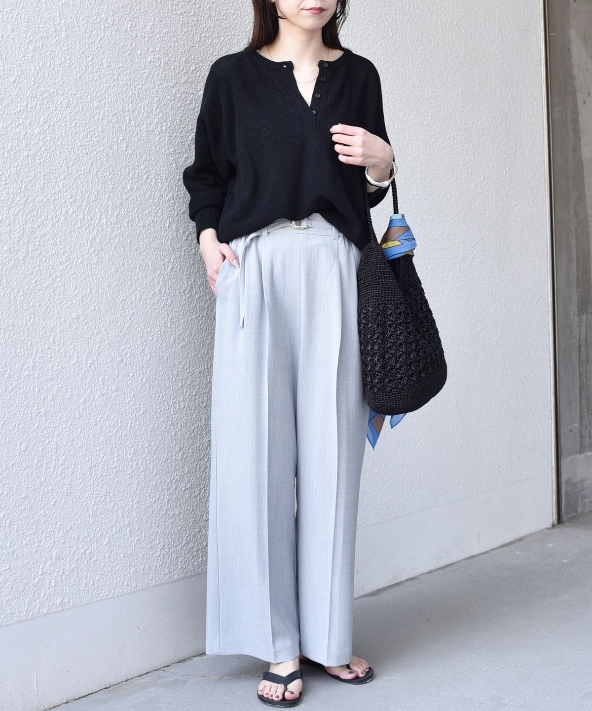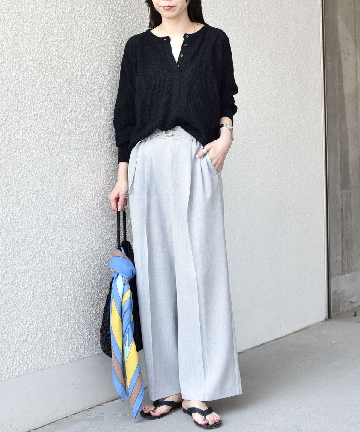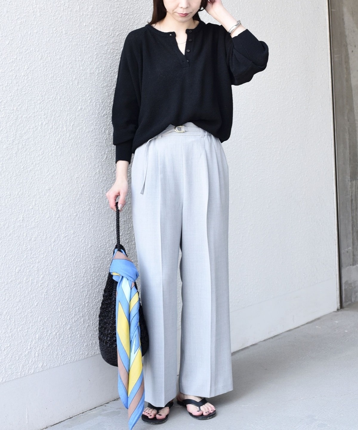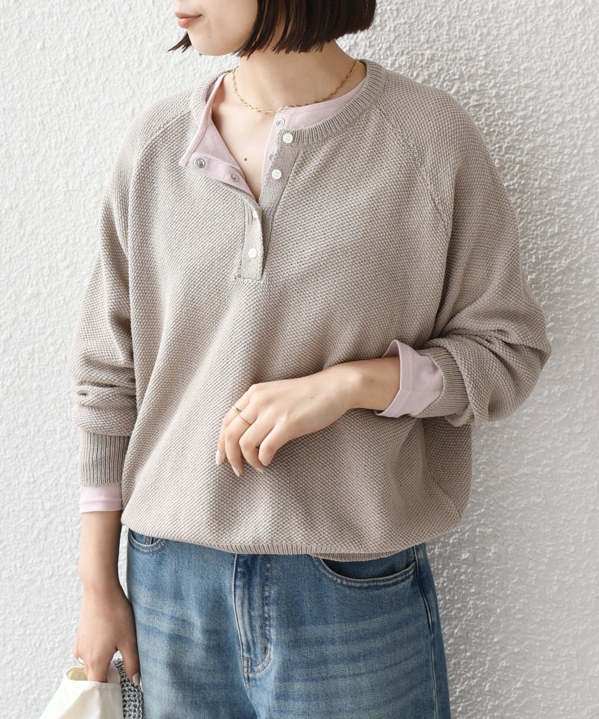 ヘンリーネックを前にして抜け感を出したり、クルーネックを前にしてシンプルにまとめたりと、雰囲気を変えて楽しんでいただけます。