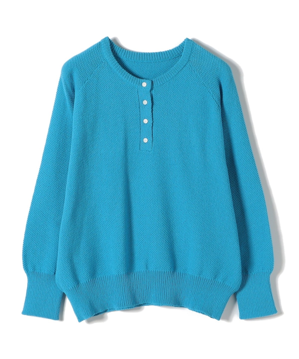 3. SHIPS Colors:〈手洗い可能〉ペーパー ライク ヘンリーネック 2WAY ニット◆ ライトブルー