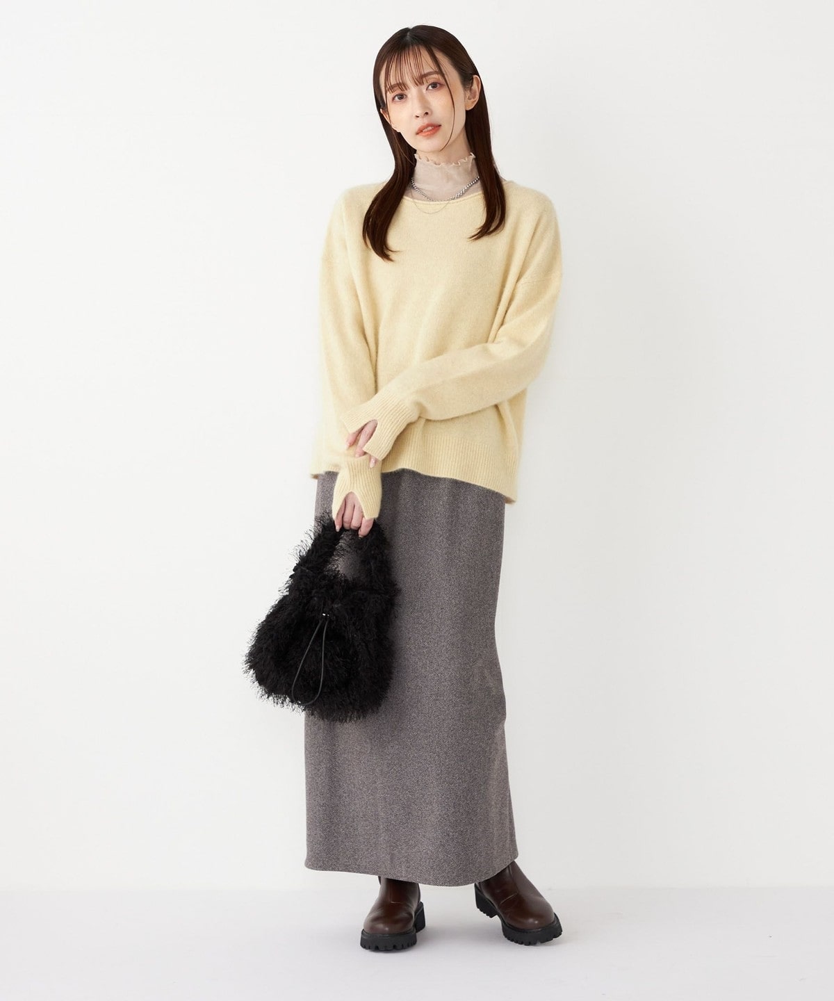 ふわふわとした素材が華やかで、イベントシーズンにもおすすめなフォックスアンゴラニット。