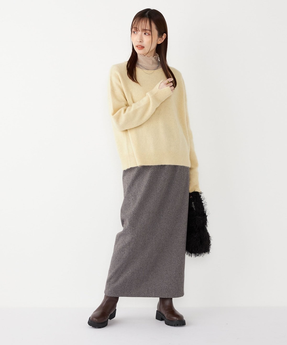 厚手すぎないため、もたつかずにコートとも合わせていただきやすいのもポイント。