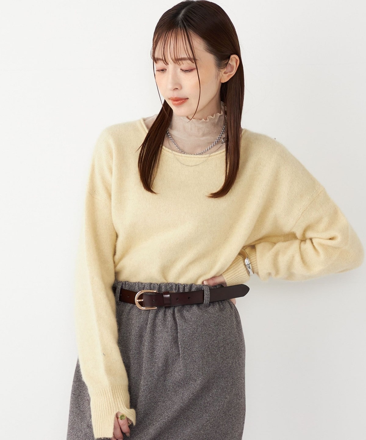 カジュアルからきれいめまで幅広く着まわせる万能ニットです。