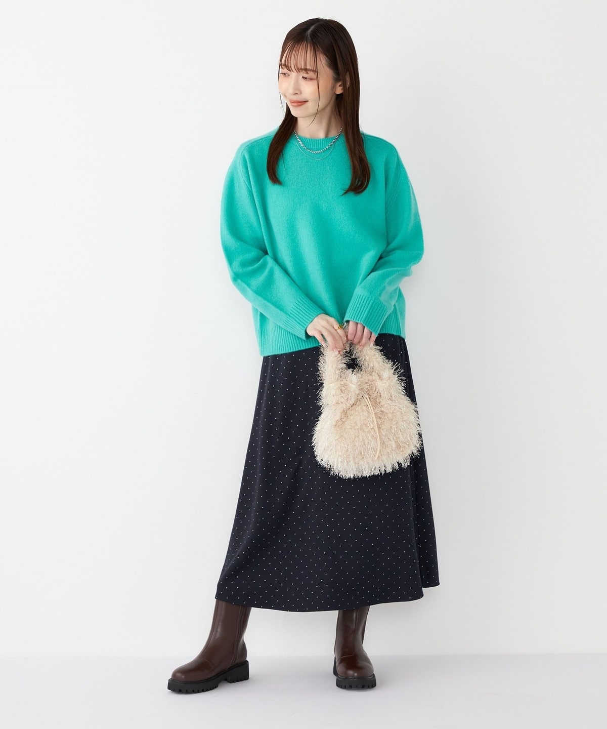 ほわほわとした素材感が、季節感と暖かみを感じさせるニット。
