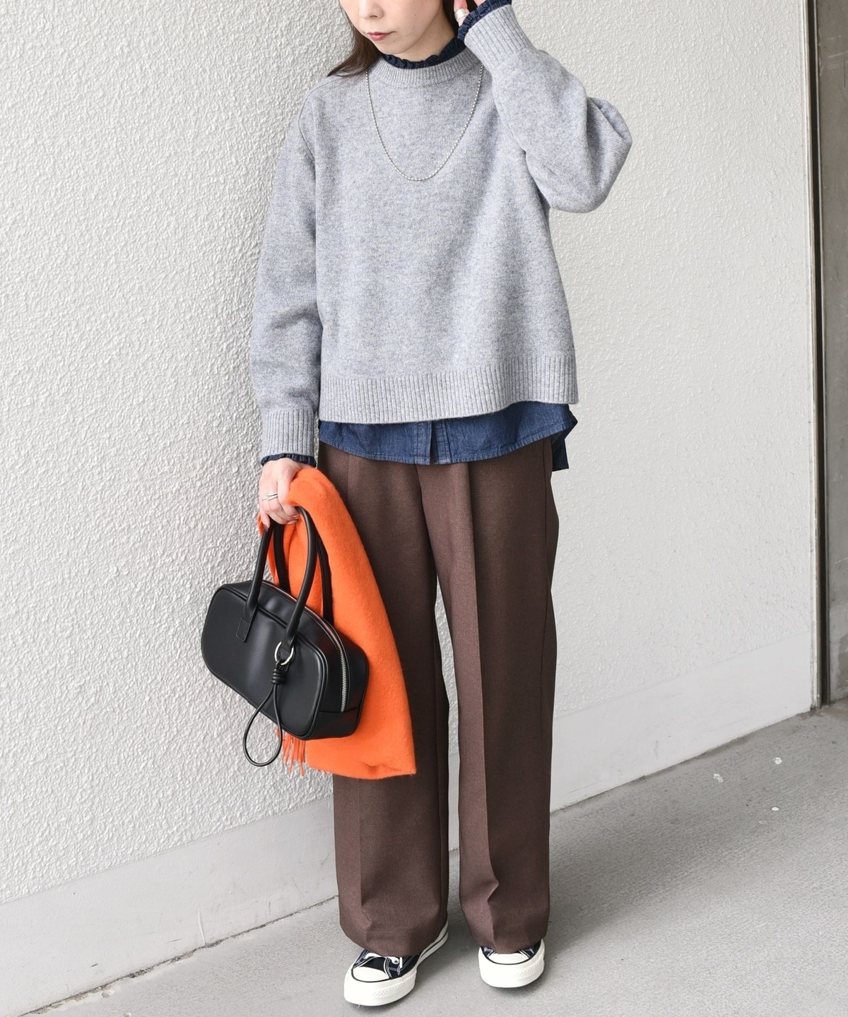 シンプルで長すぎない着丈がどんなアイテムとも好相性で、バランス良く合わせていただけます。