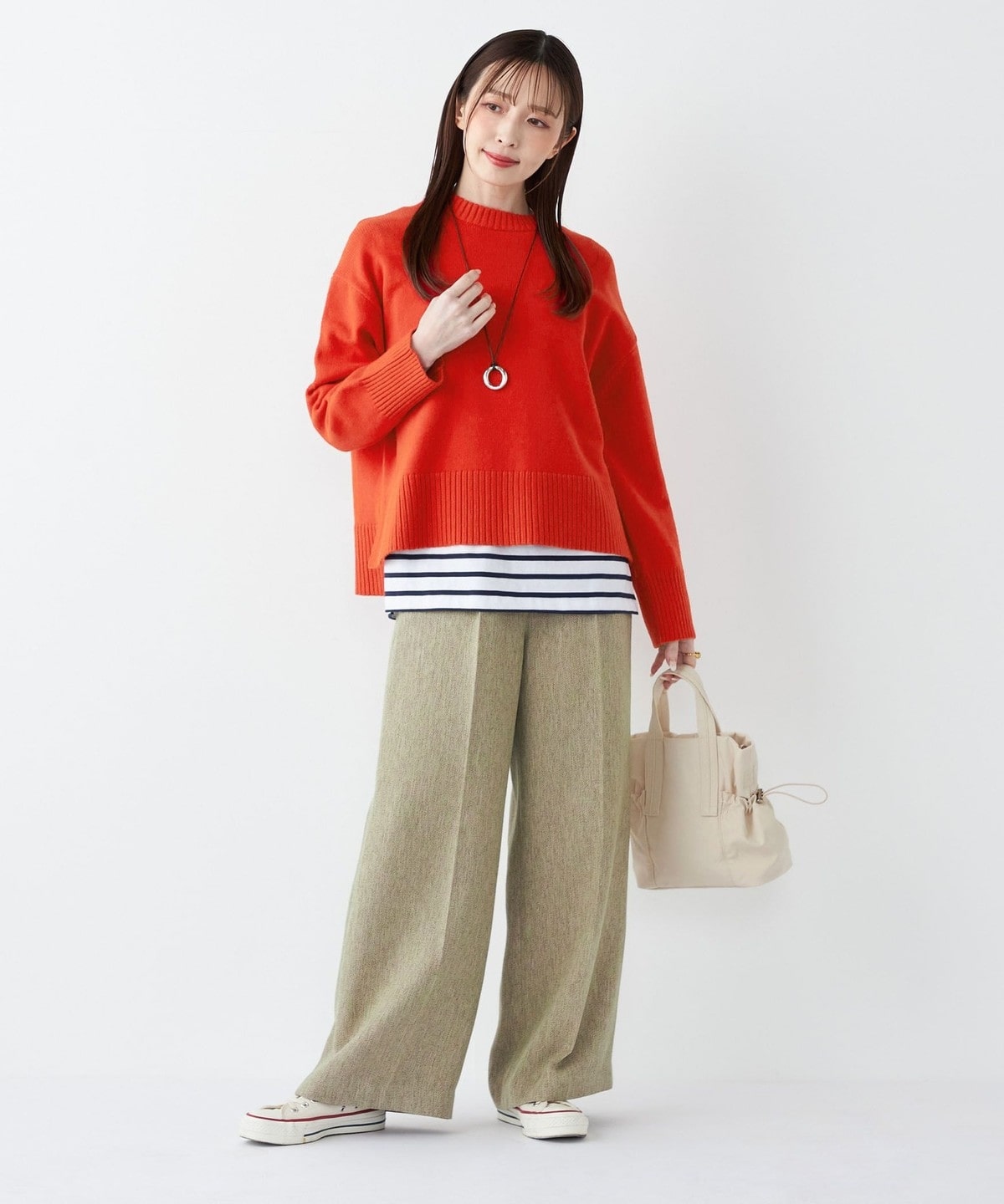 ワイドパンツと合わせた着こなしはもちろん、タイトスカートやプリーツスカートとも好相性です◎
