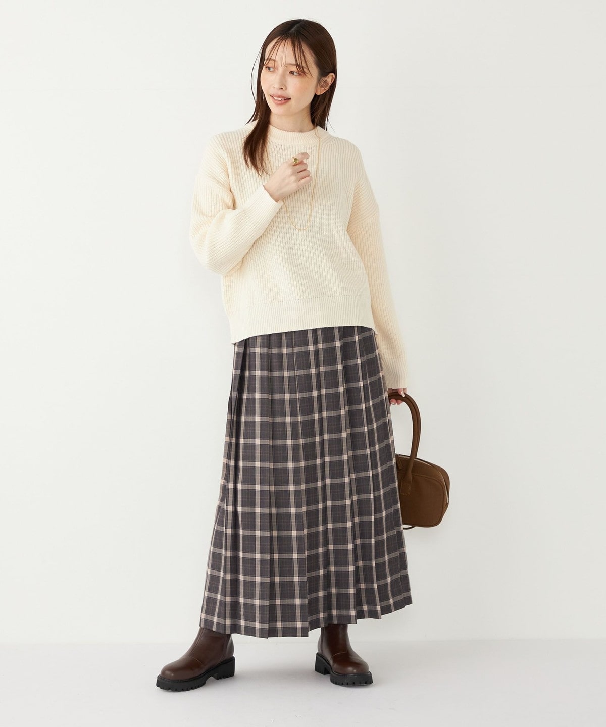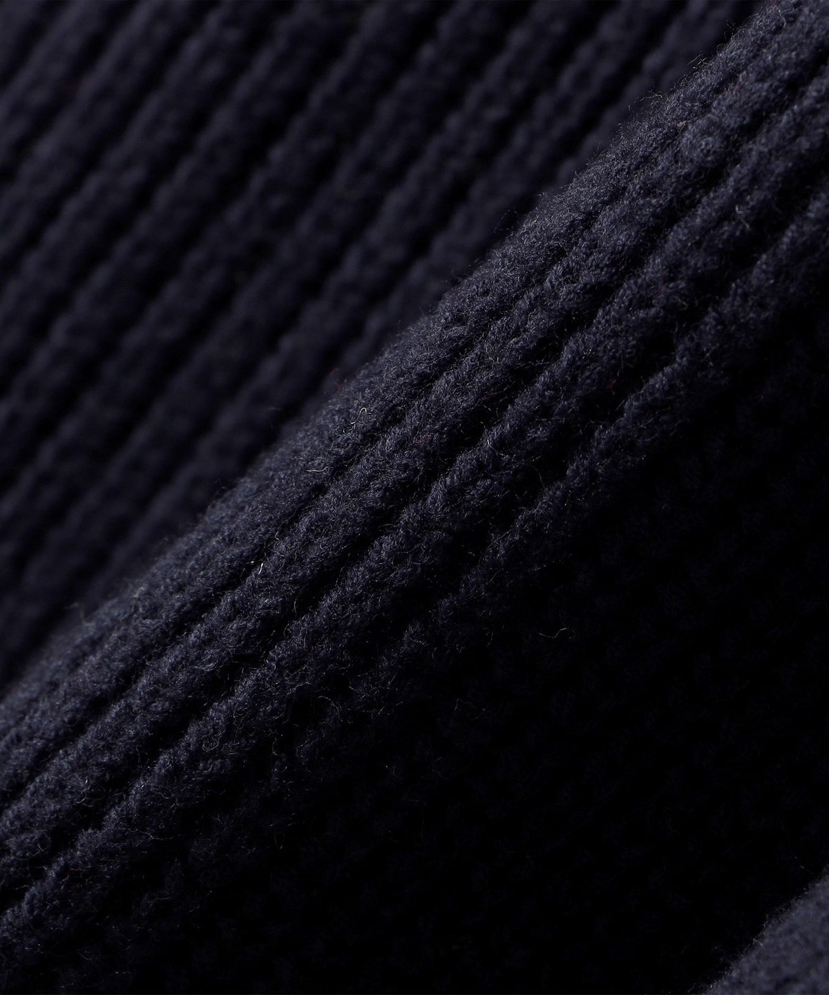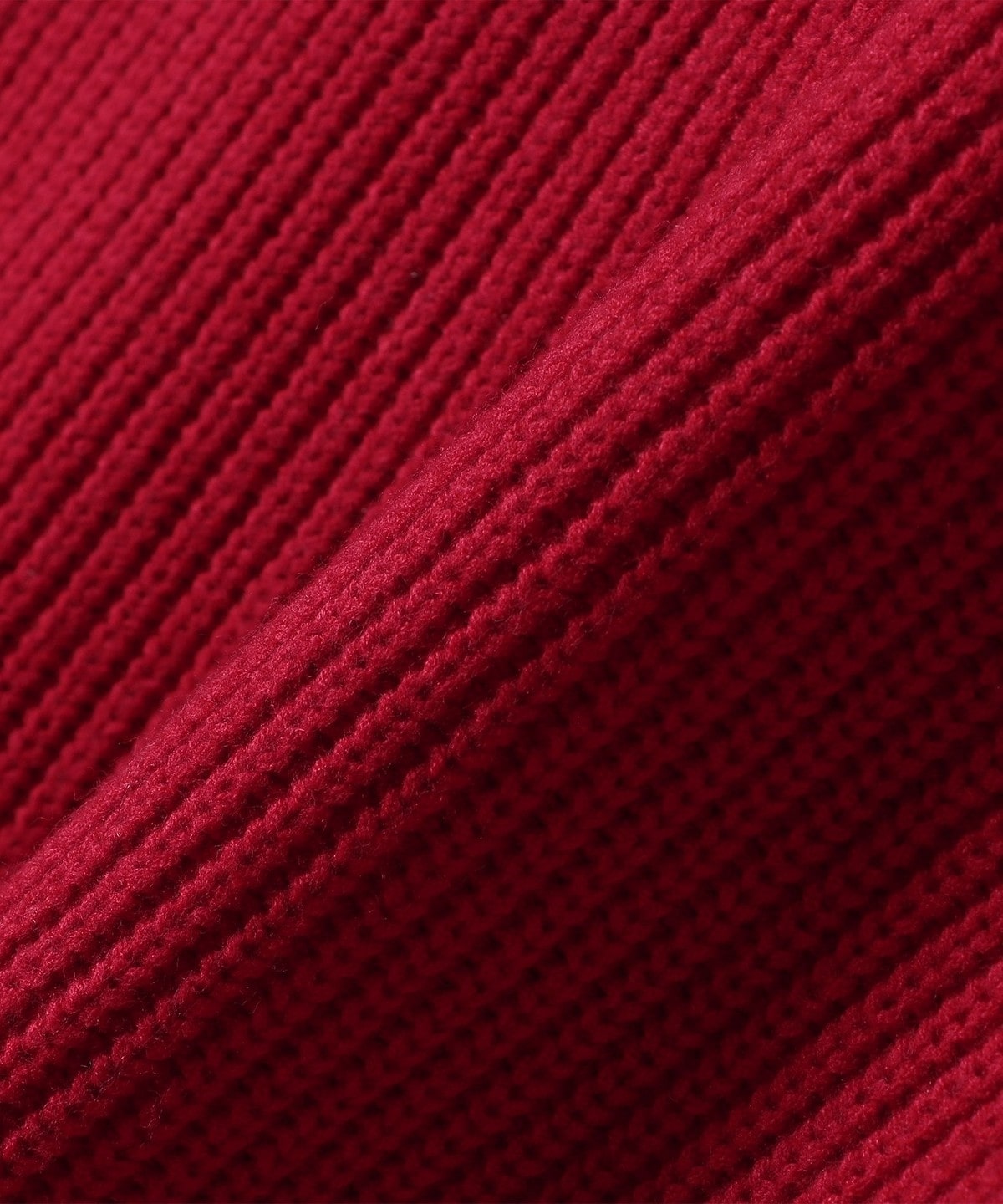 畦編み特有の凹凸感がほどよい表情を与え、シンプルながらも大人のスタイルに映える1枚です。