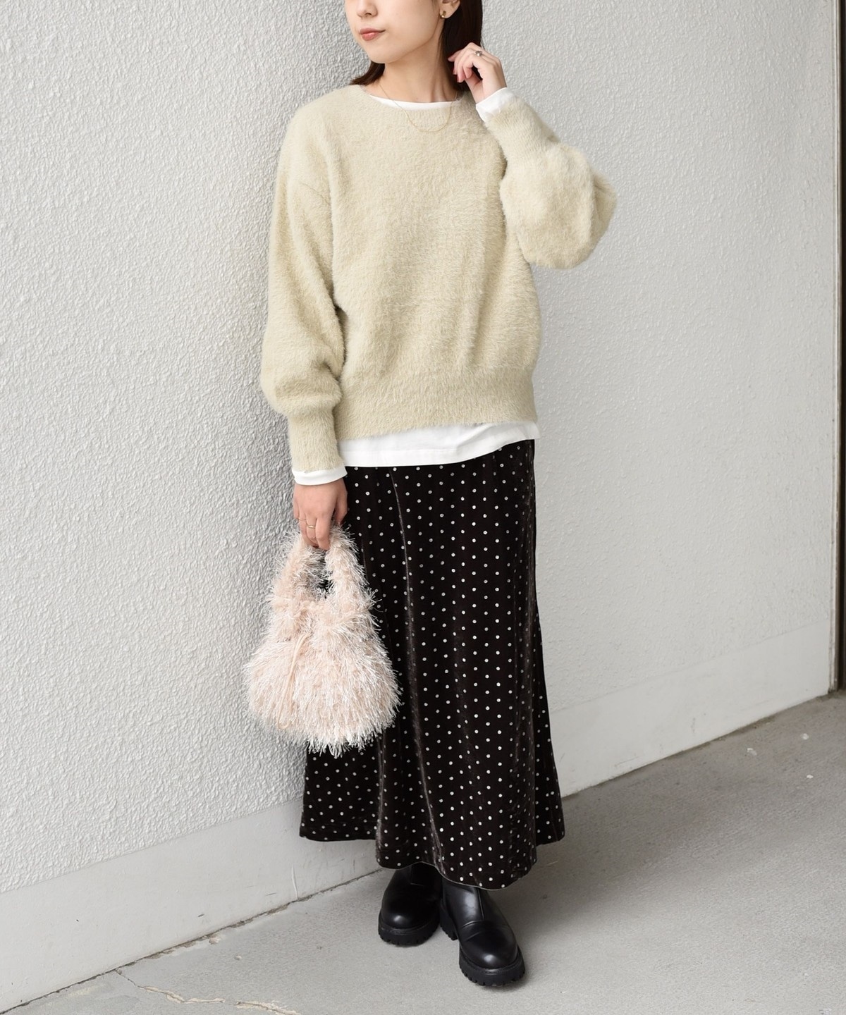 程よくゆとりのあるシルエットが魅力のシャギーニット。