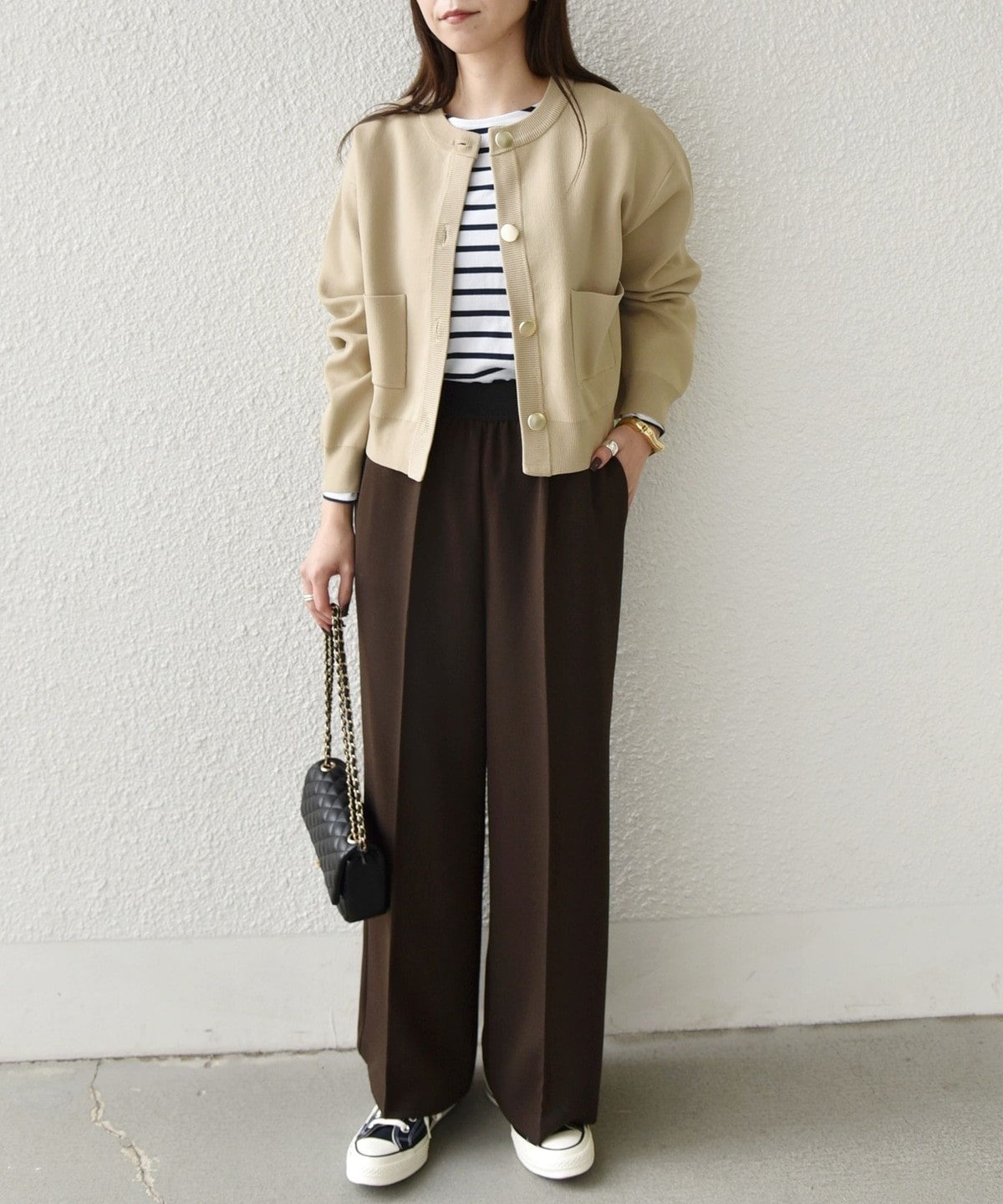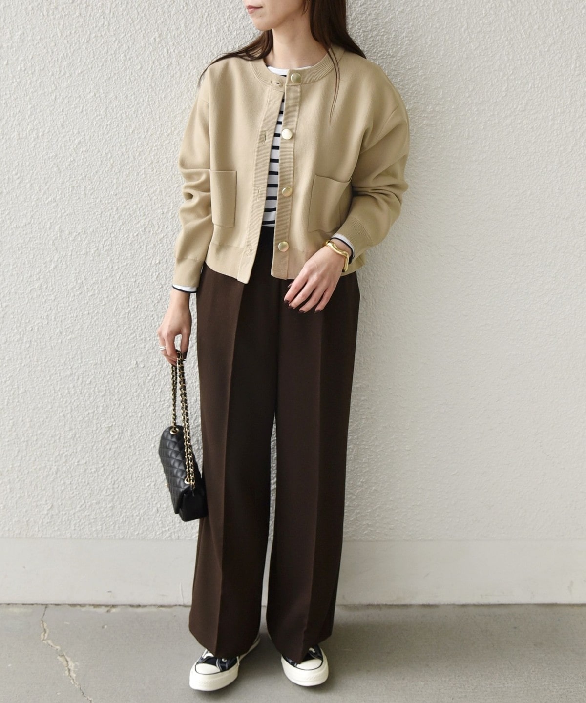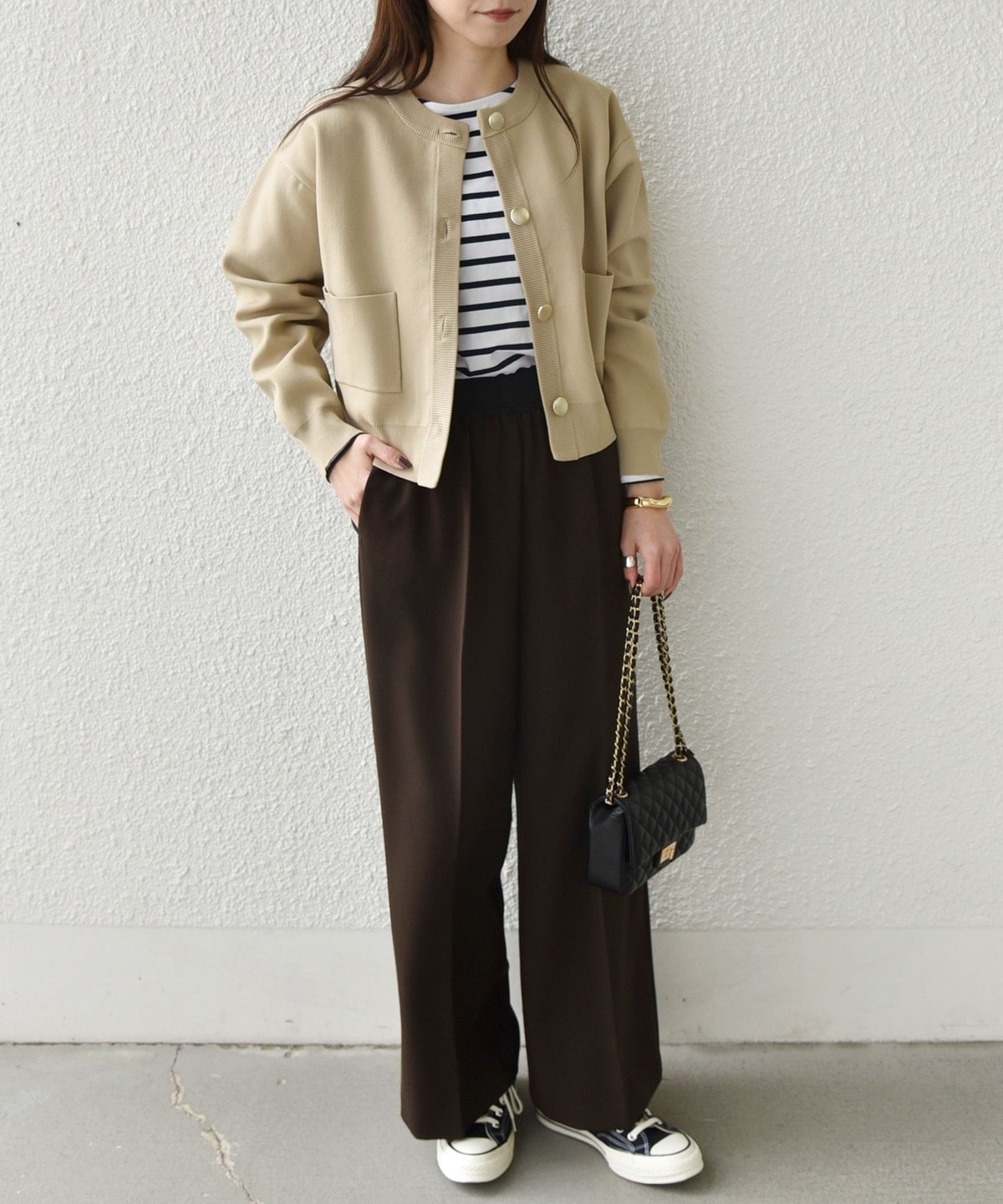 合わせるアイテム次第でON/OFF幅広く着回しができ、大人の綺麗めカジュアルスタイルにおすすめの一枚です。
