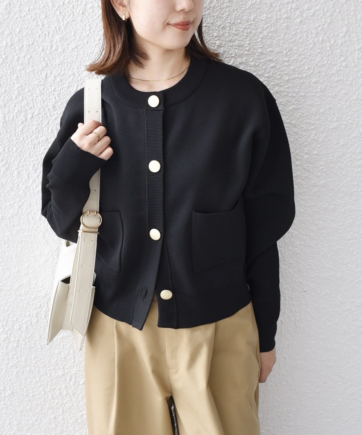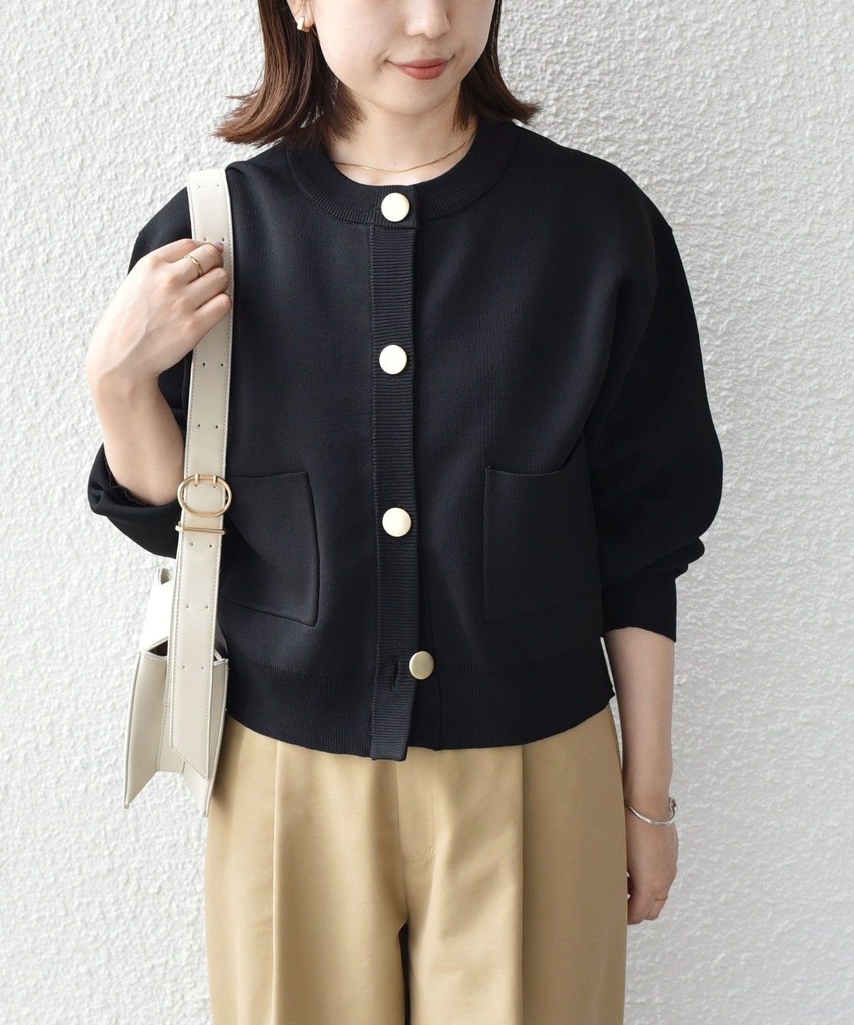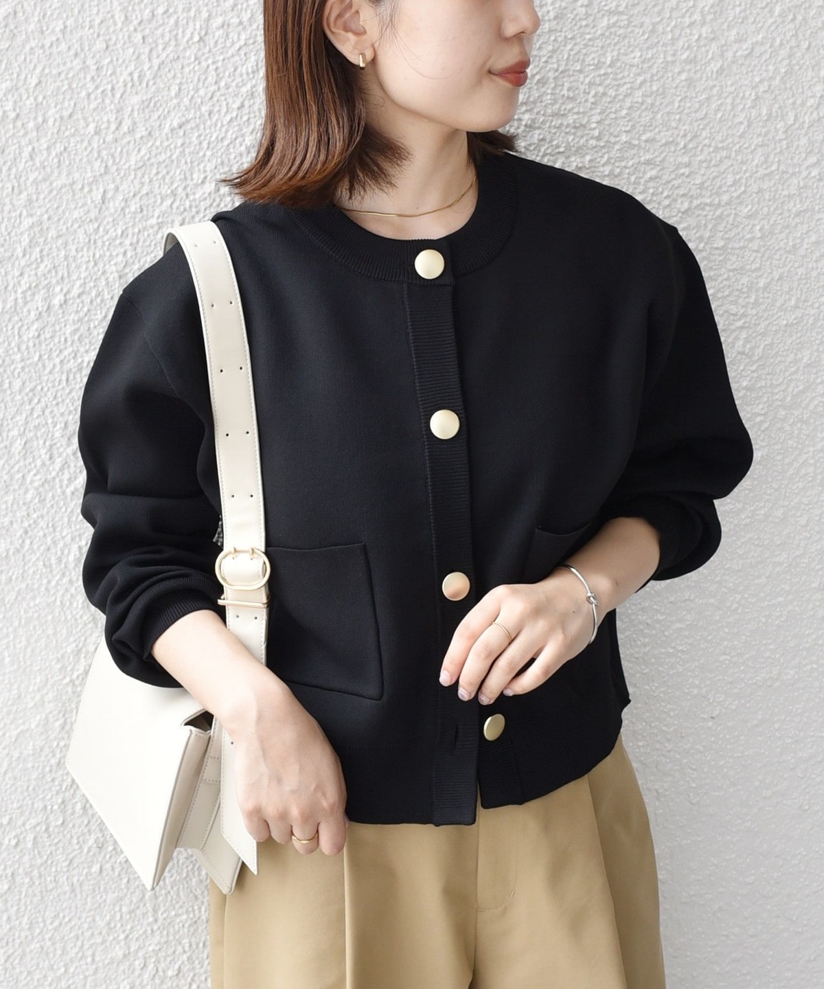 3. 《一部追加予約》SHIPS Colors:〈手洗い可能〉メタルボタン クルーネック カーディガン◆ ブラック