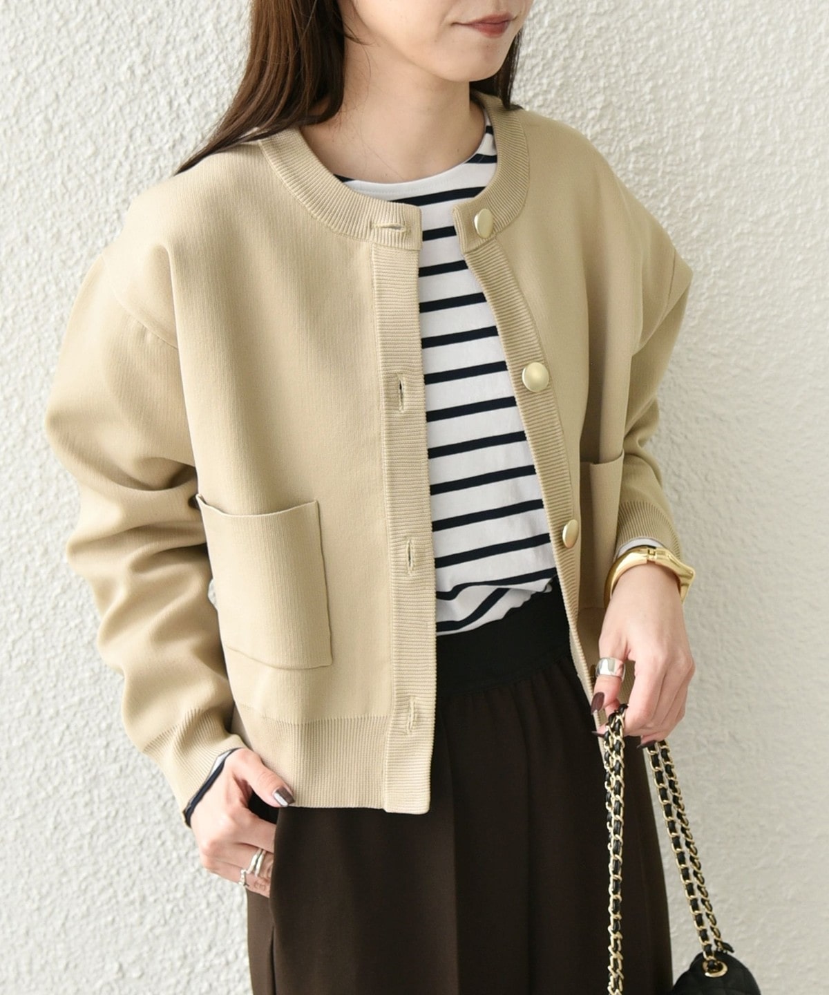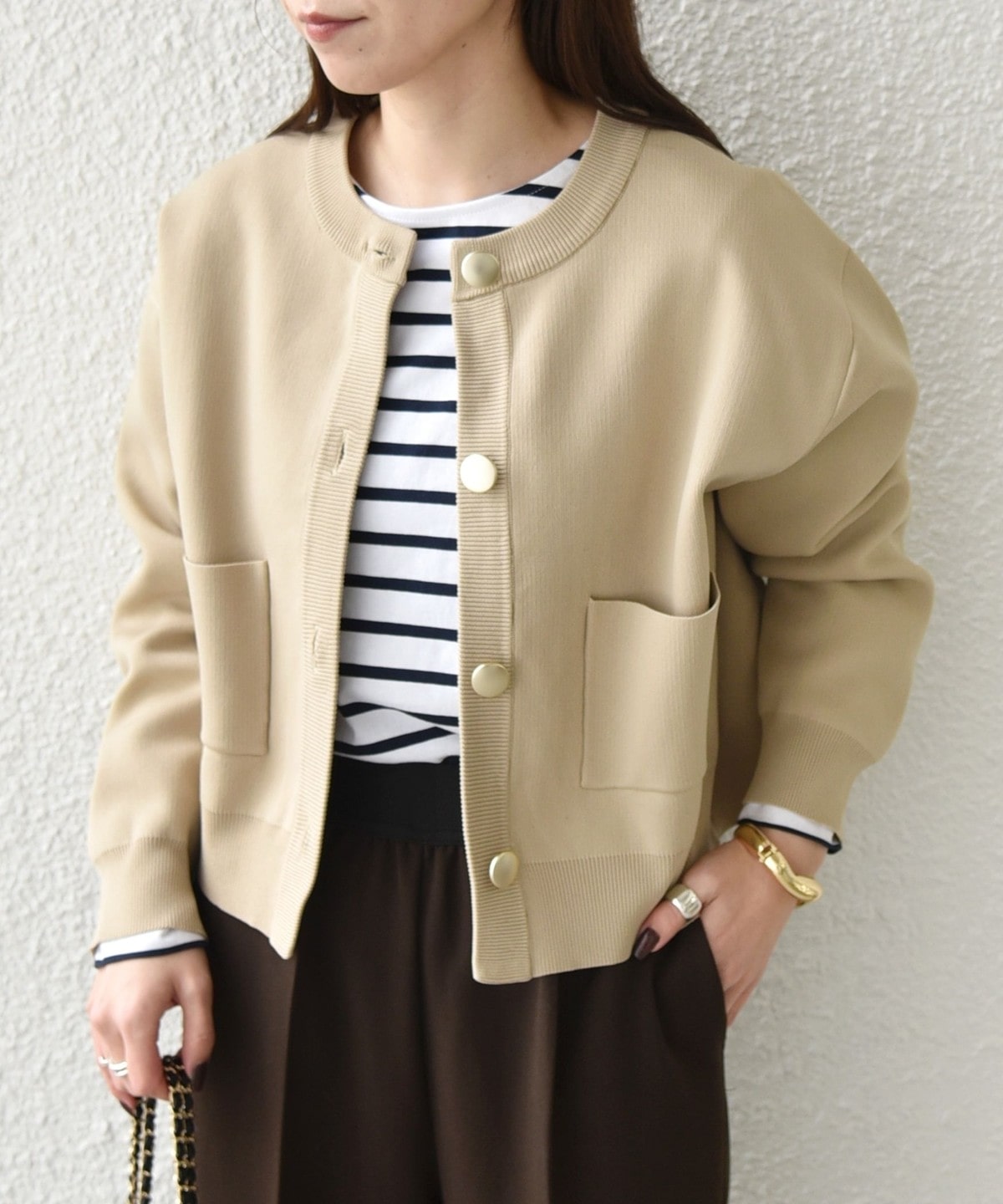 やや肉厚で程よいハリ感がありながらも、軽い着心地でニットジャケット感覚で着用していただけます。