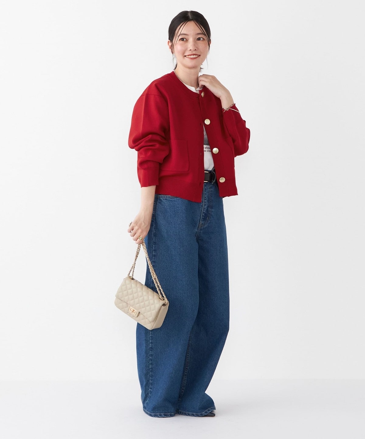 1. 《一部追加予約》SHIPS Colors:〈手洗い可能〉メタルボタン クルーネック カーディガン◆ レッド