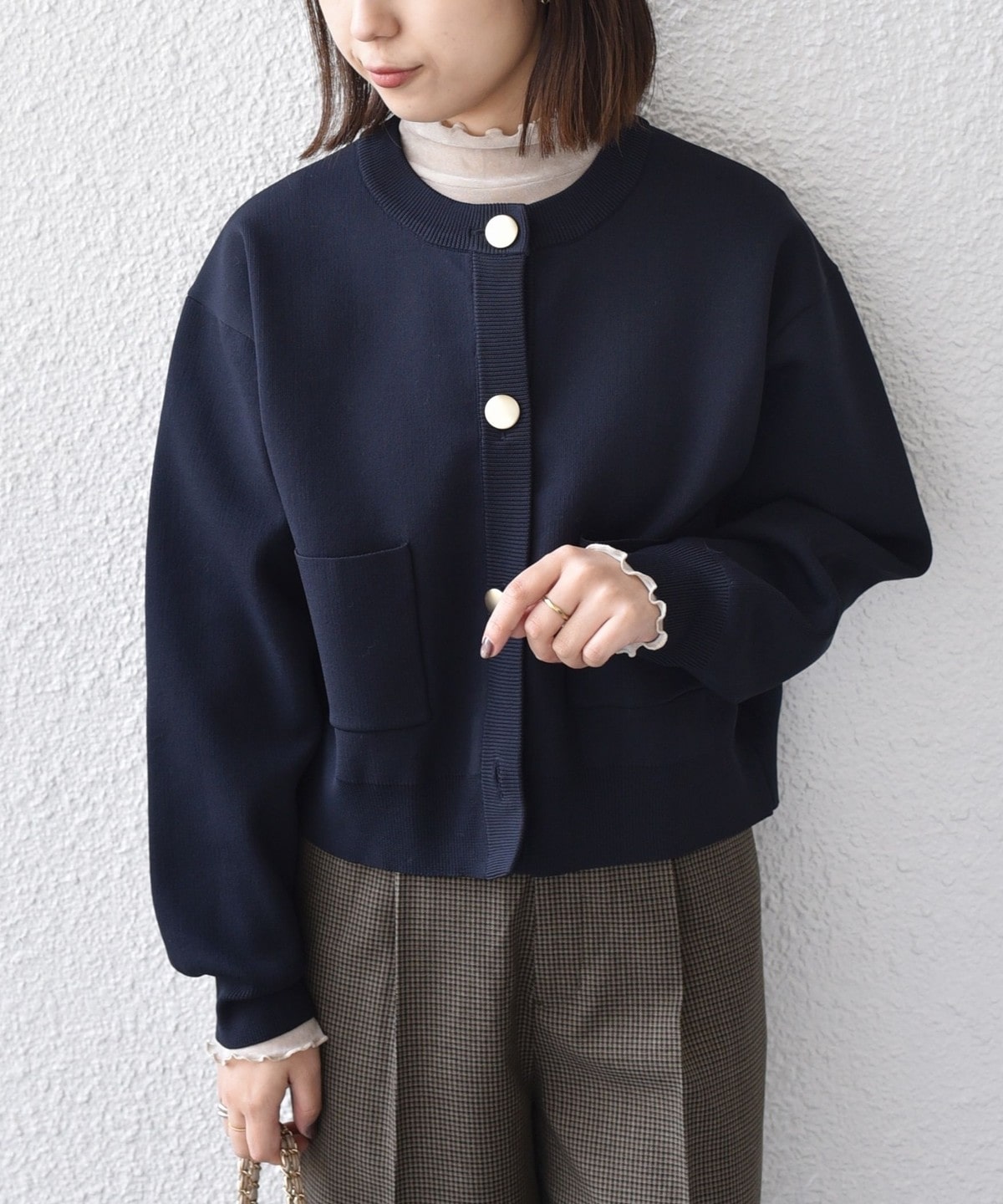 42. 《一部追加予約》SHIPS Colors:〈手洗い可能〉メタルボタン クルーネック カーディガン◆