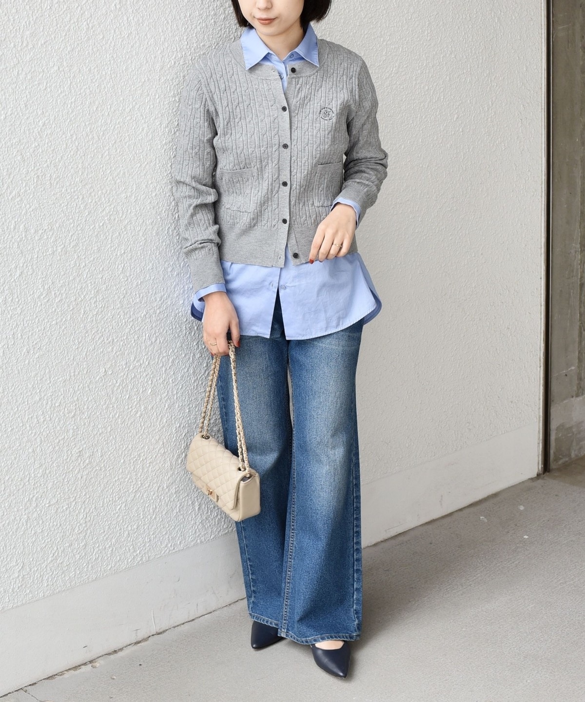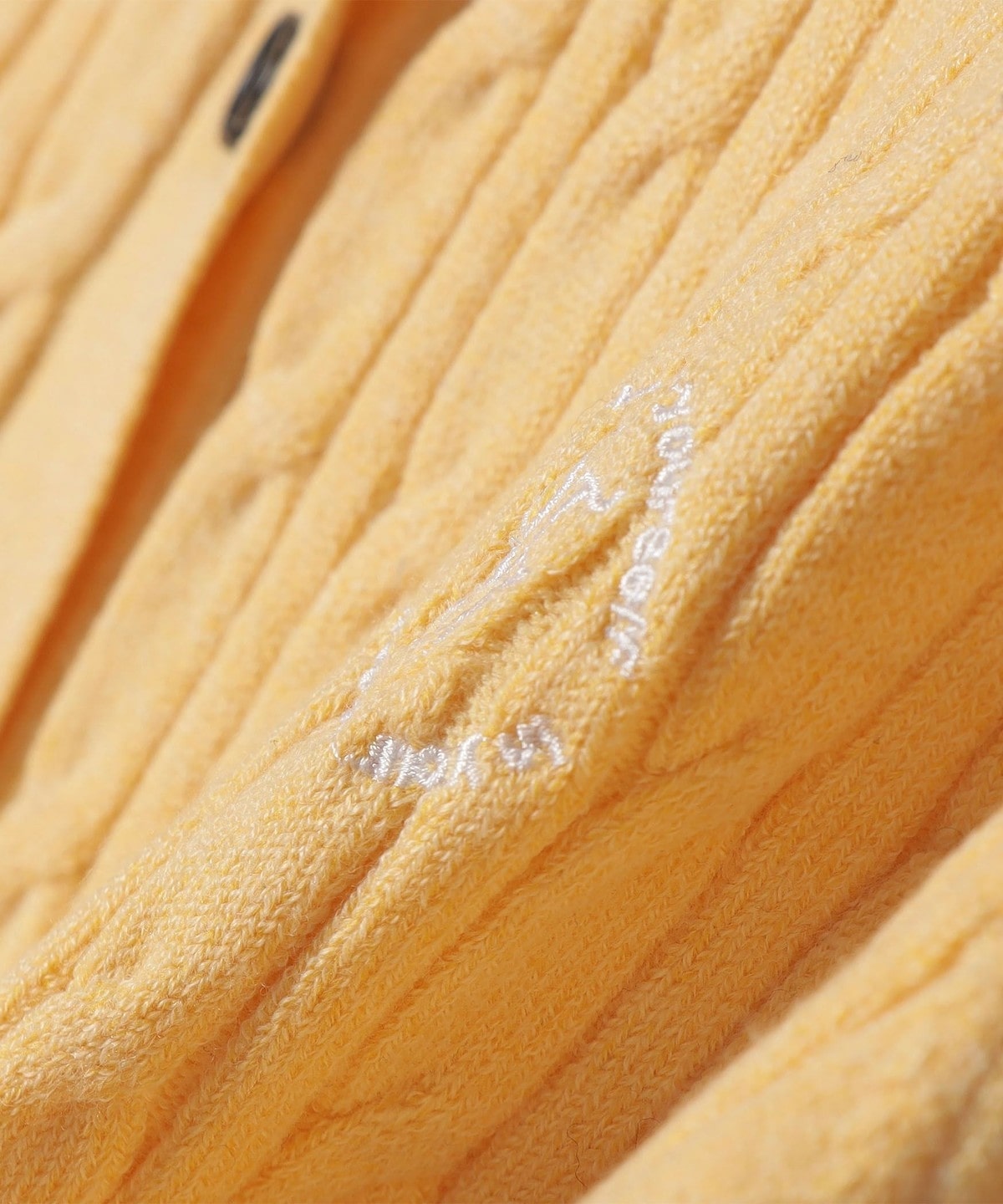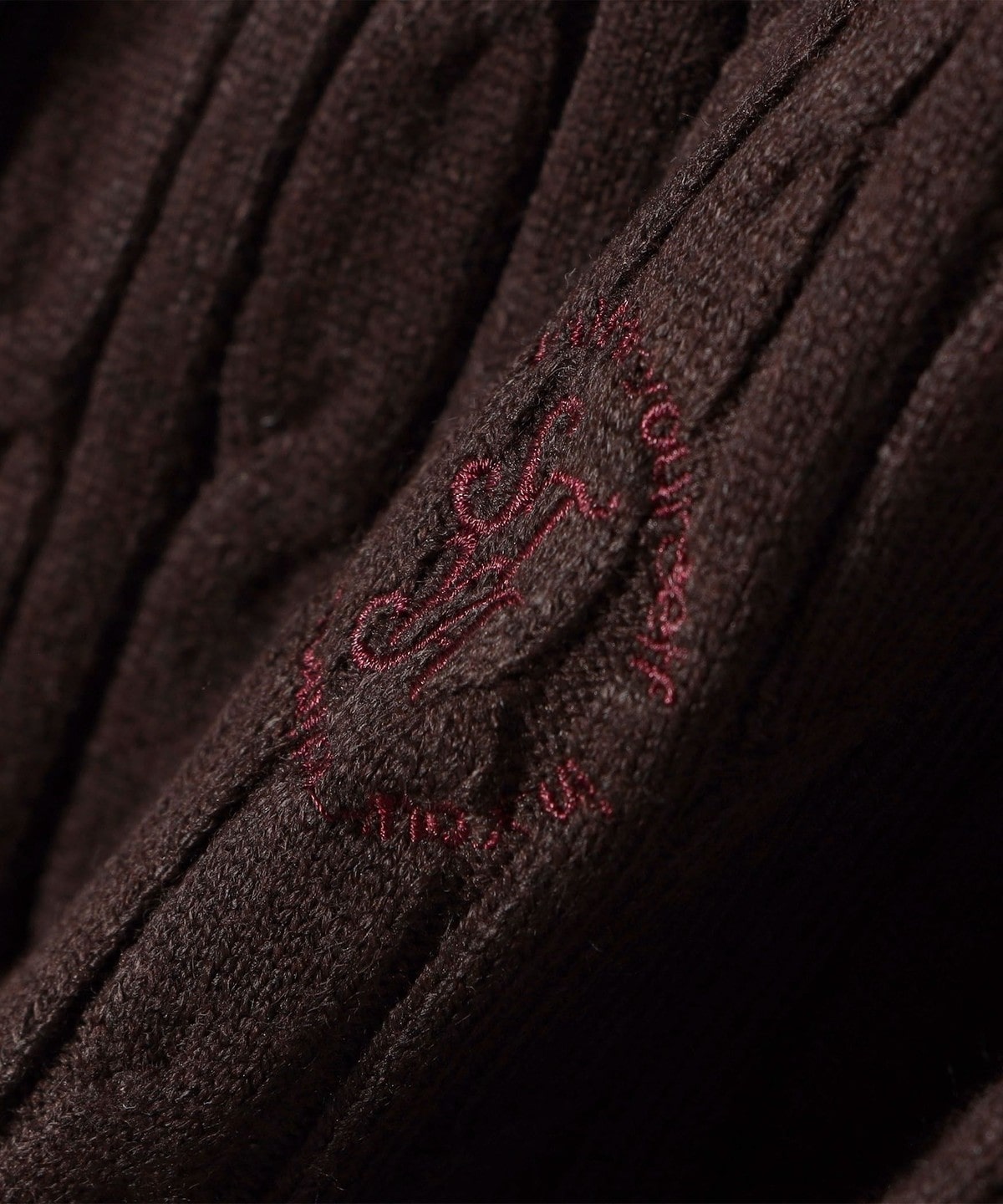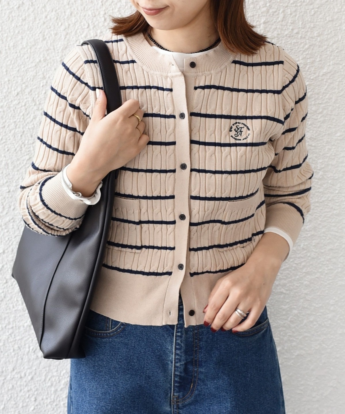 ミニケーブル編みと胸元の刺繍ロゴがさりげないアクセントに。