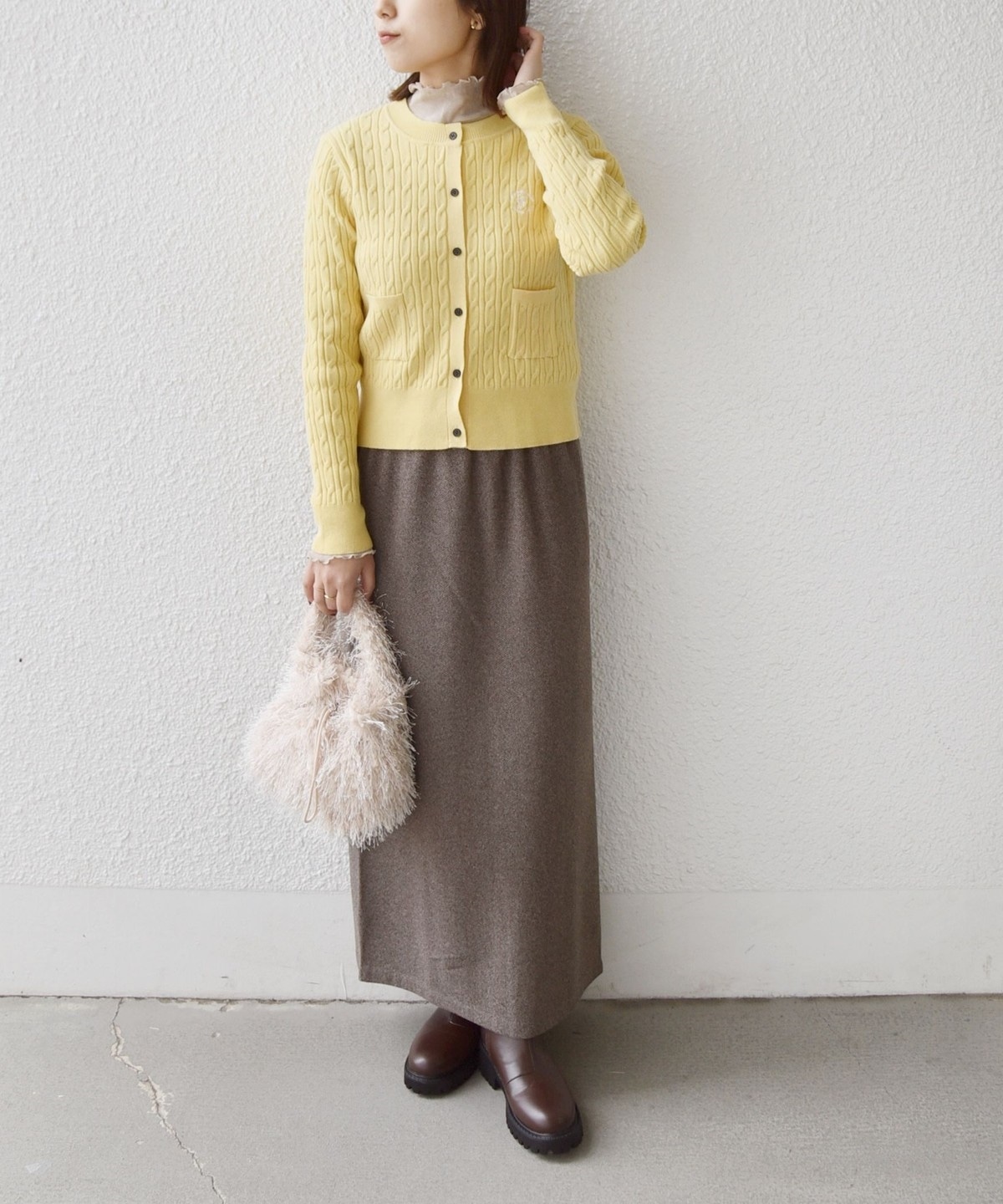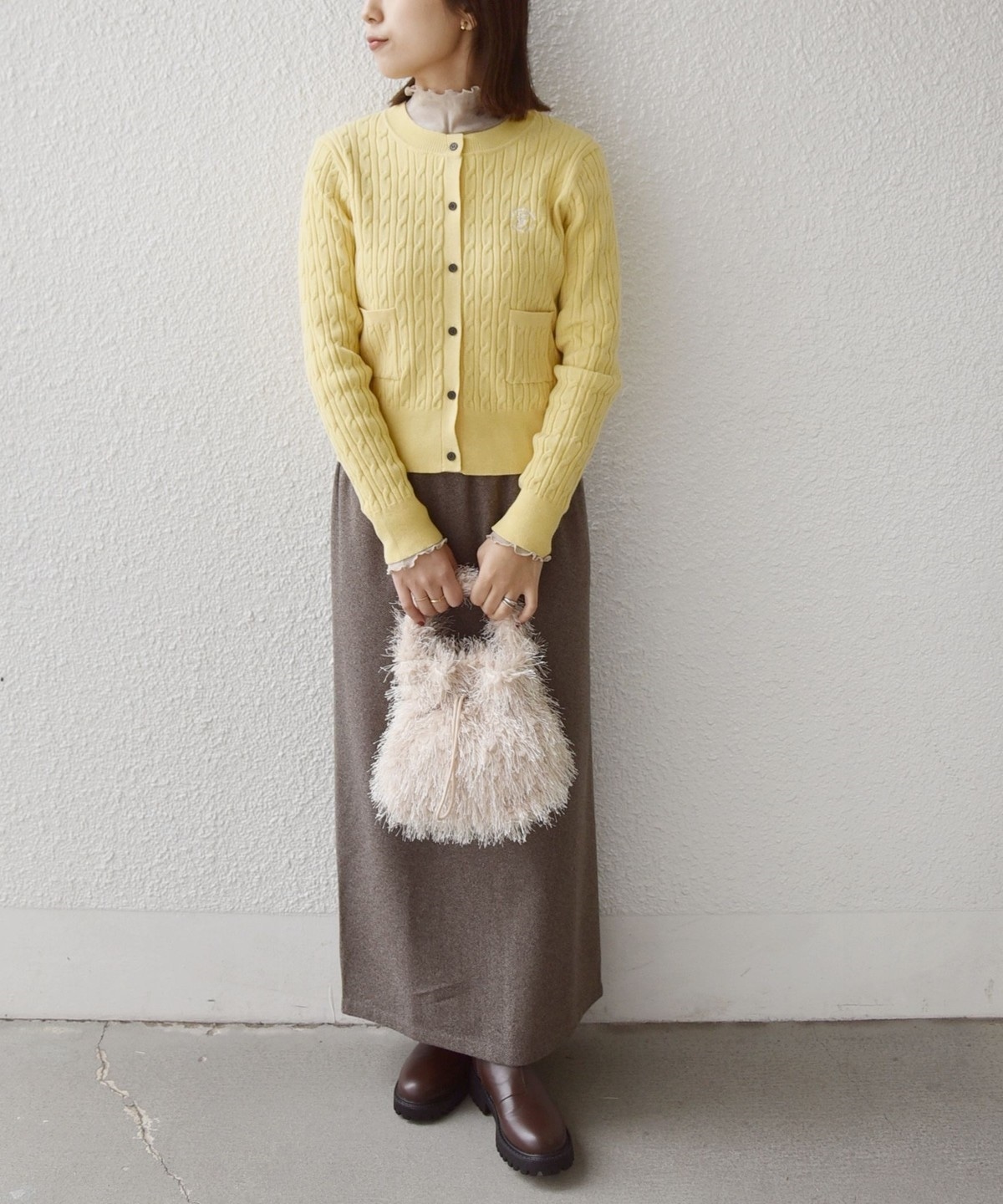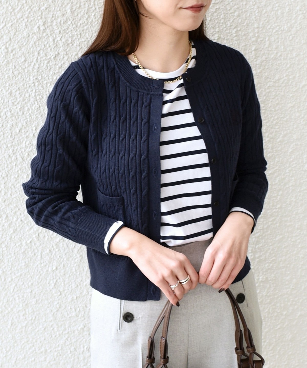クラシカルな雰囲気のミニケーブルカーディガン。