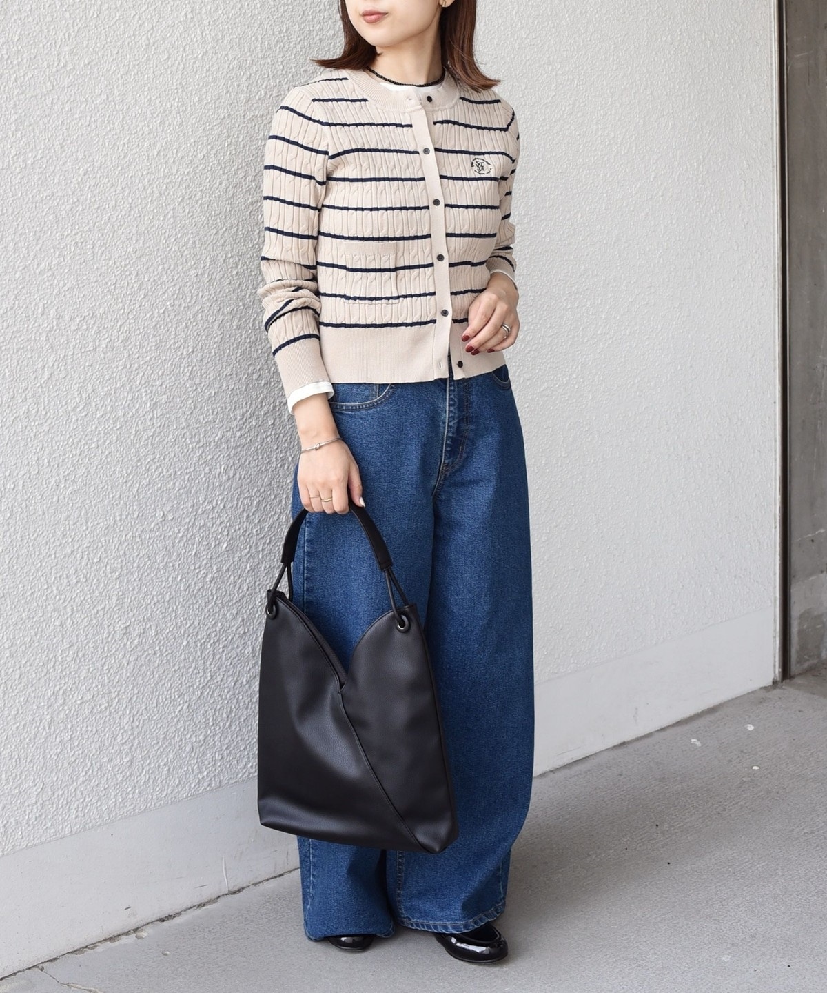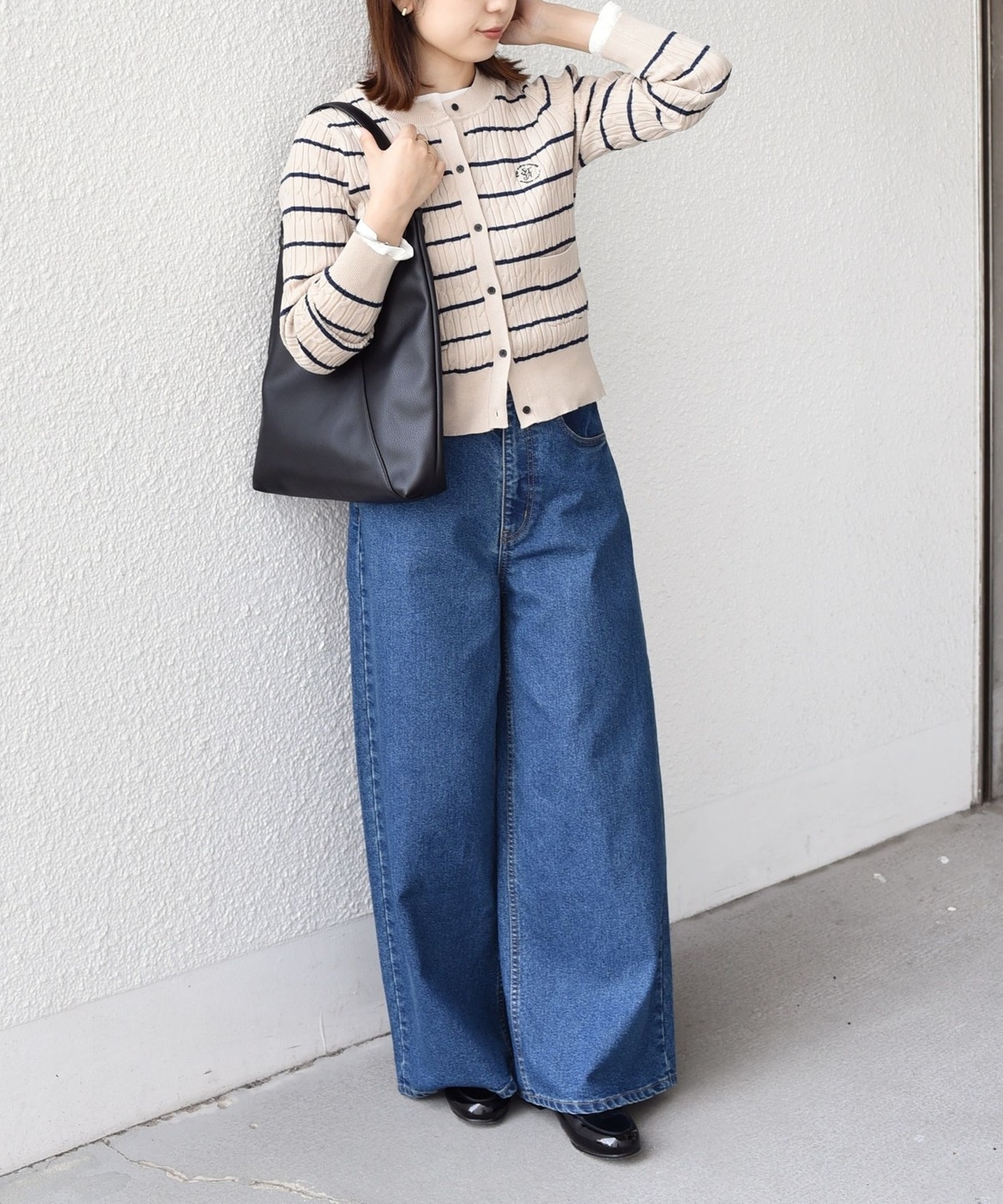 短めの丈感は、ボリュームのあるスカートやパンツと好バランス。