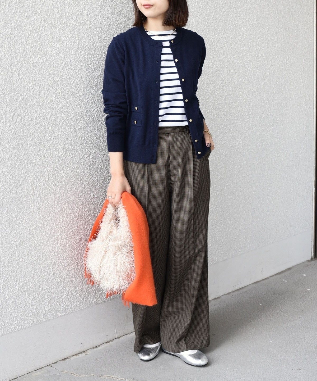 コンパクトなシルエットなので、ワイドパンツなどボリュームのあるボトムと好相性。