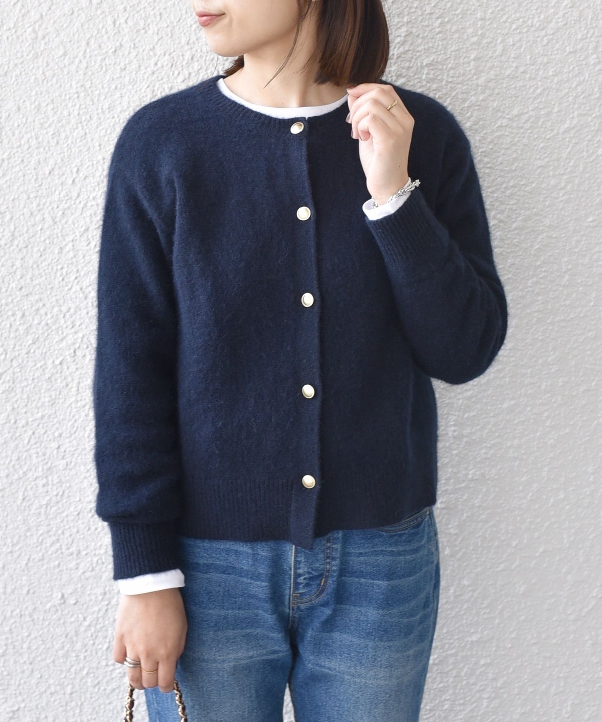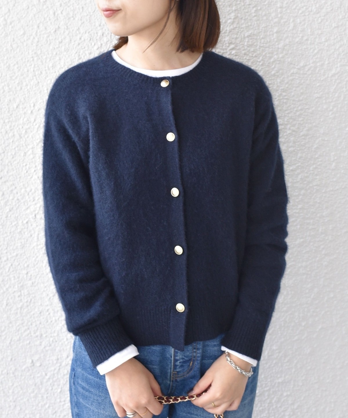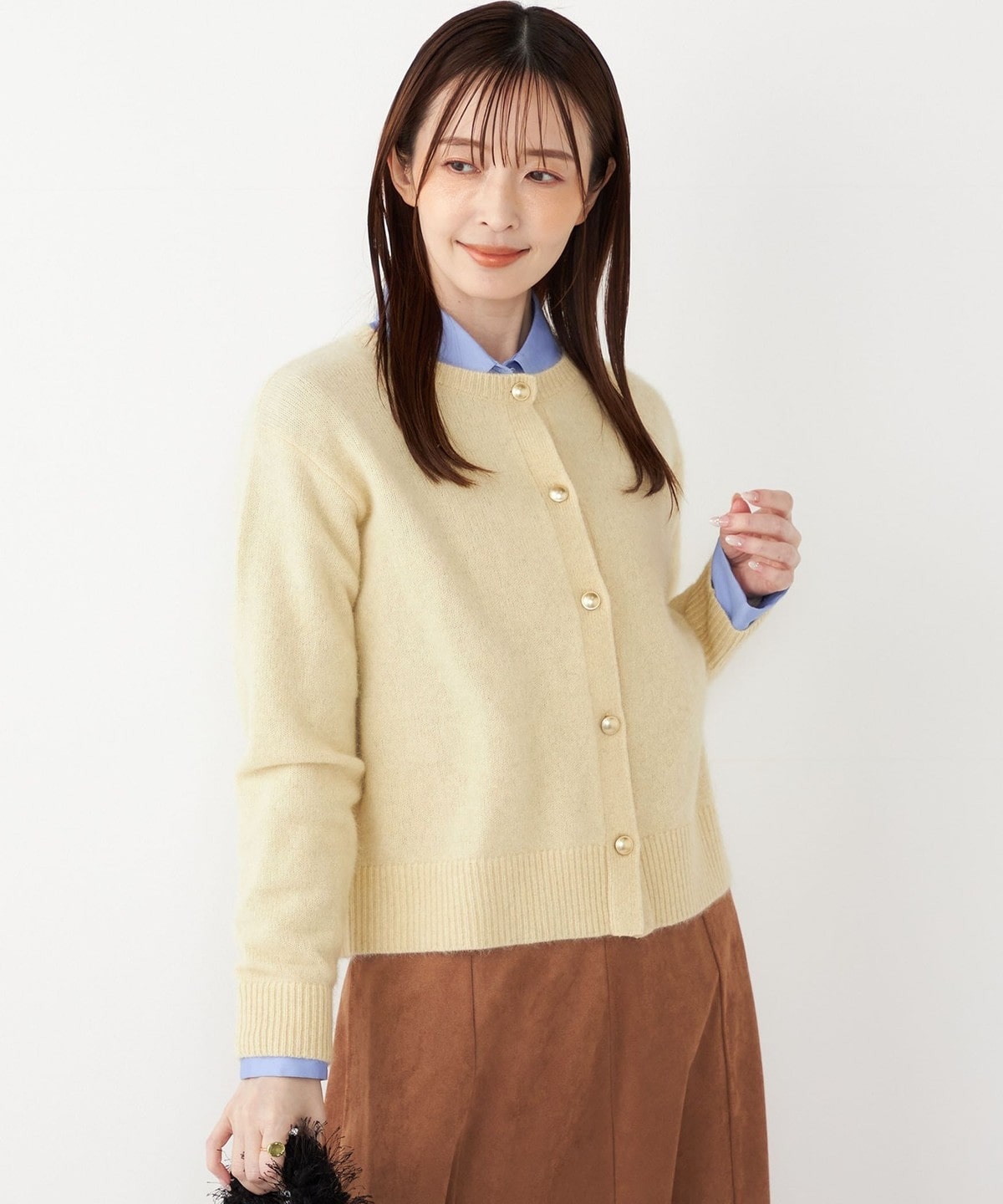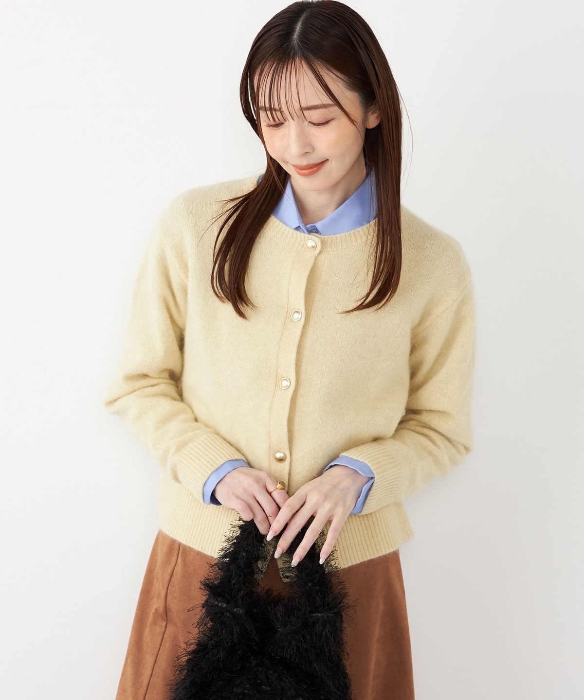 ふわふわな生地感が秋冬のムードを高めてくれるフォックスアンゴラカーディガン。