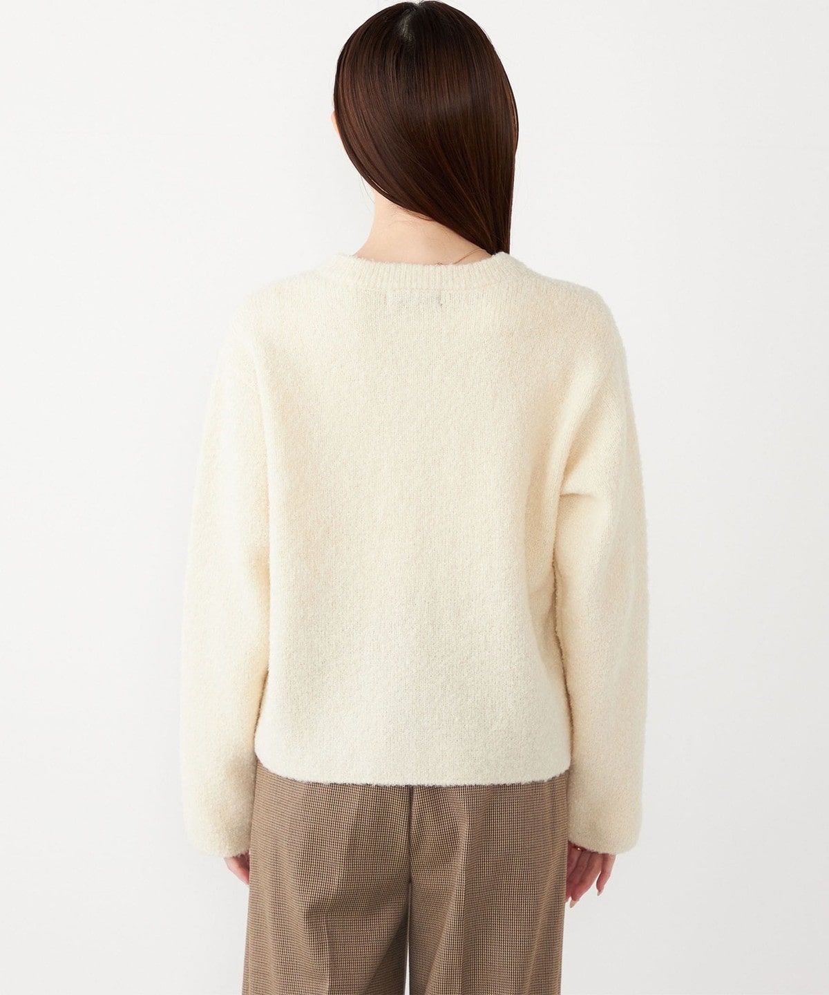 クルーネックなので、寒い時期はタートルネックと重ねてもすっきり着こなしていただけます。