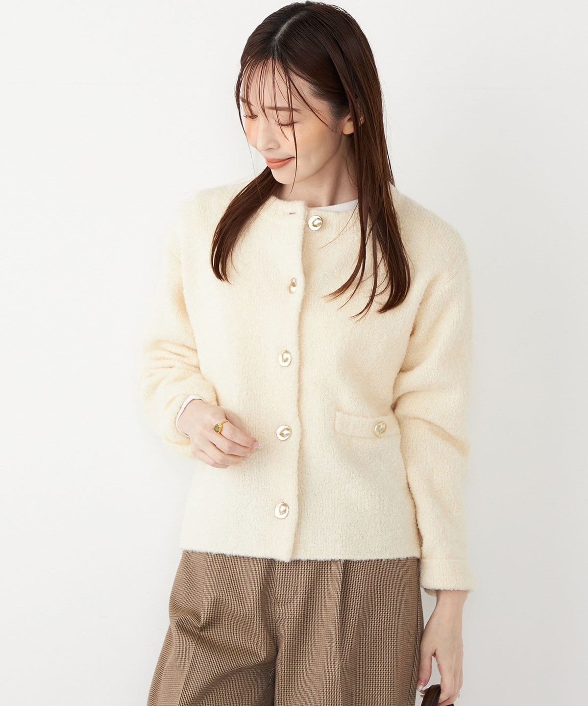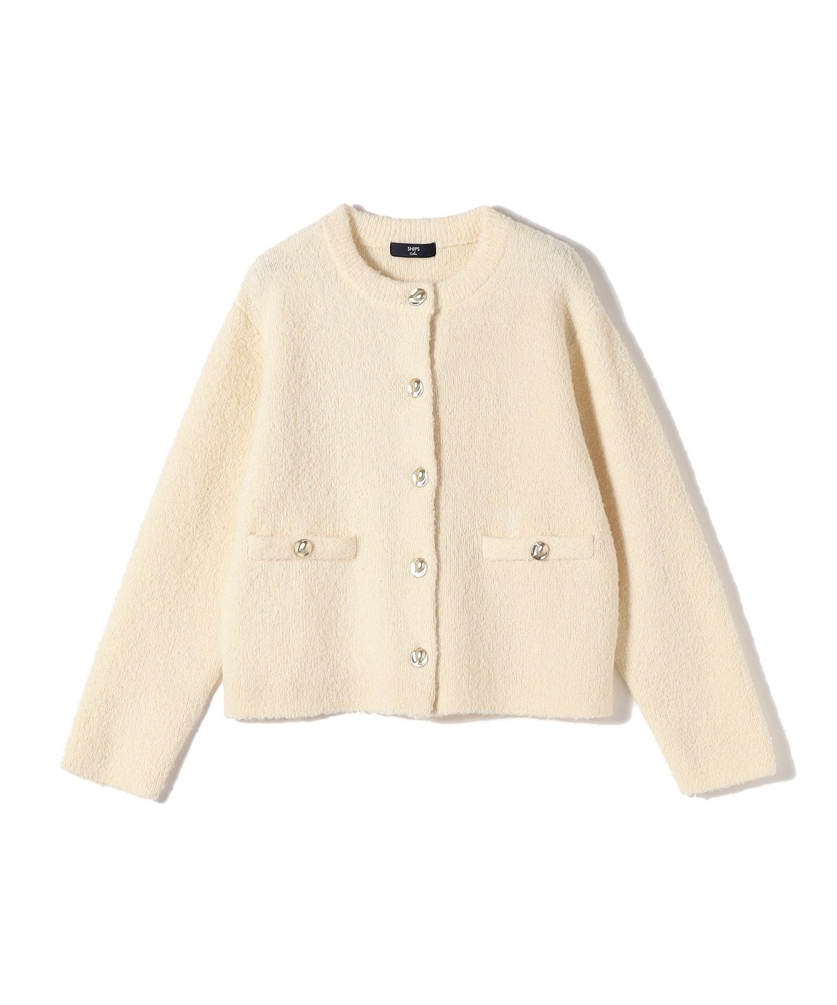 1. SHIPS Colors:〈手洗い可能〉ブークレ ニット ジャケット オフホワイト