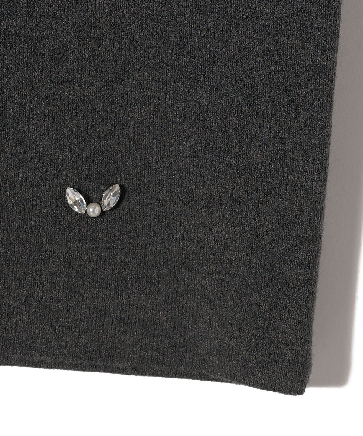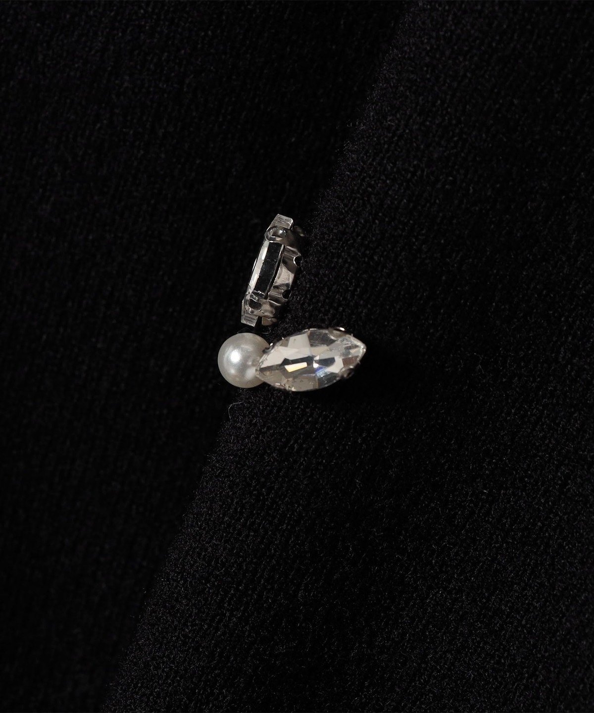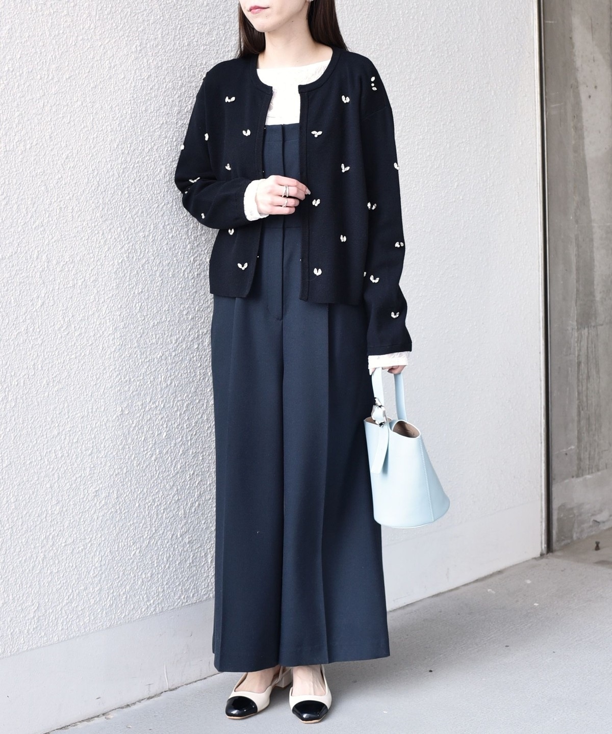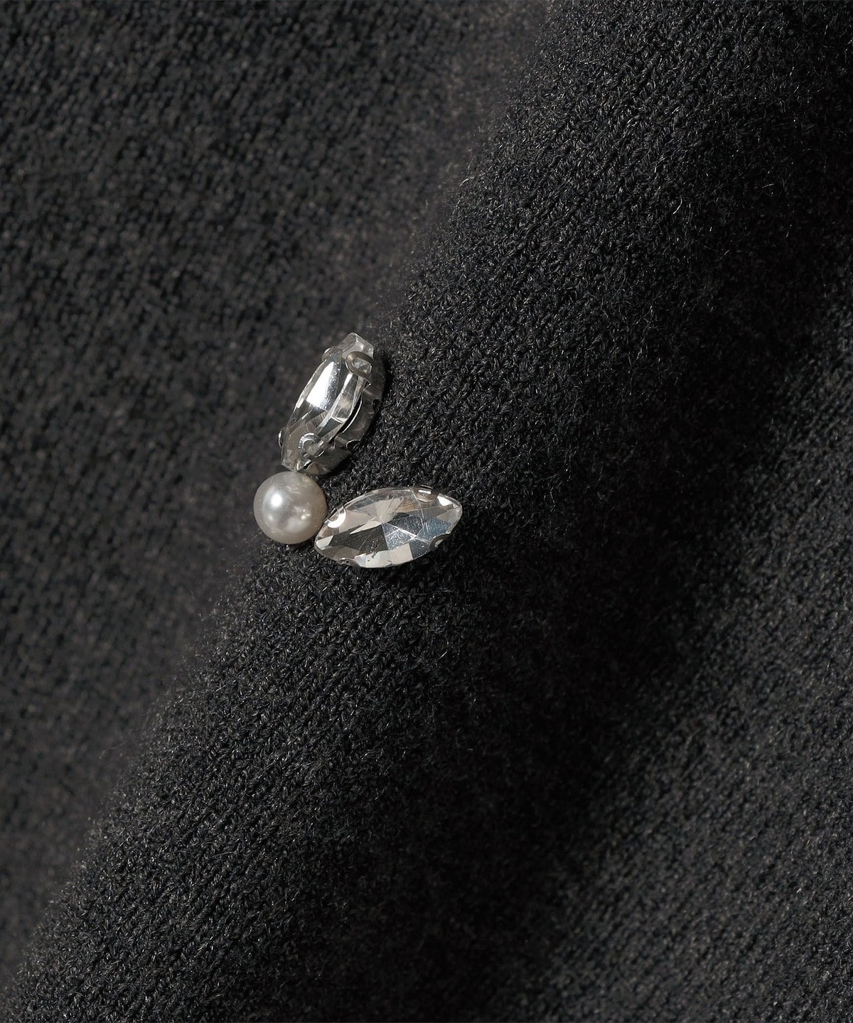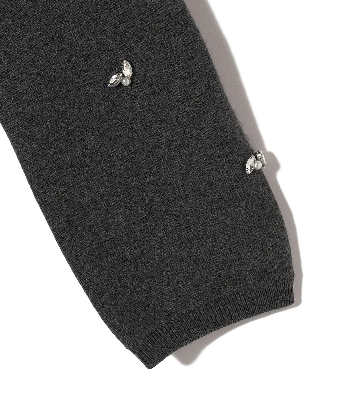 パールモチーフとリーフ型のビジューを組み合わせた模様がポイントの、今季らしいカーディガン。