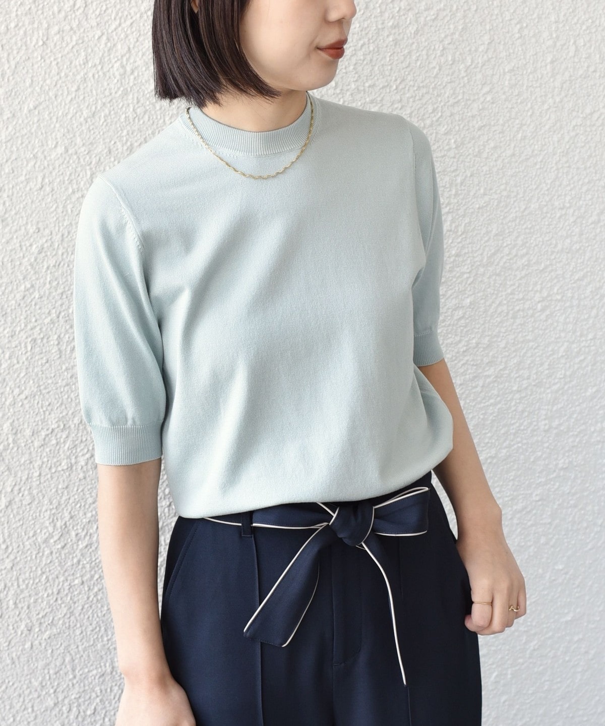 《予約》SHIPS Colors:〈接触冷感・手洗い可能〉14ゲージ 5分袖 ニット◆