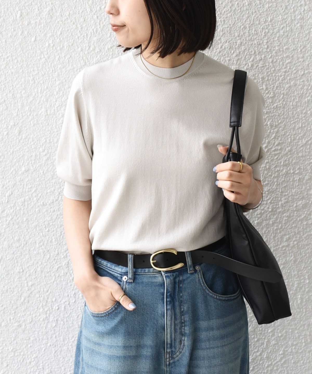 コンパクトでシンプルなショートスリーブニット。