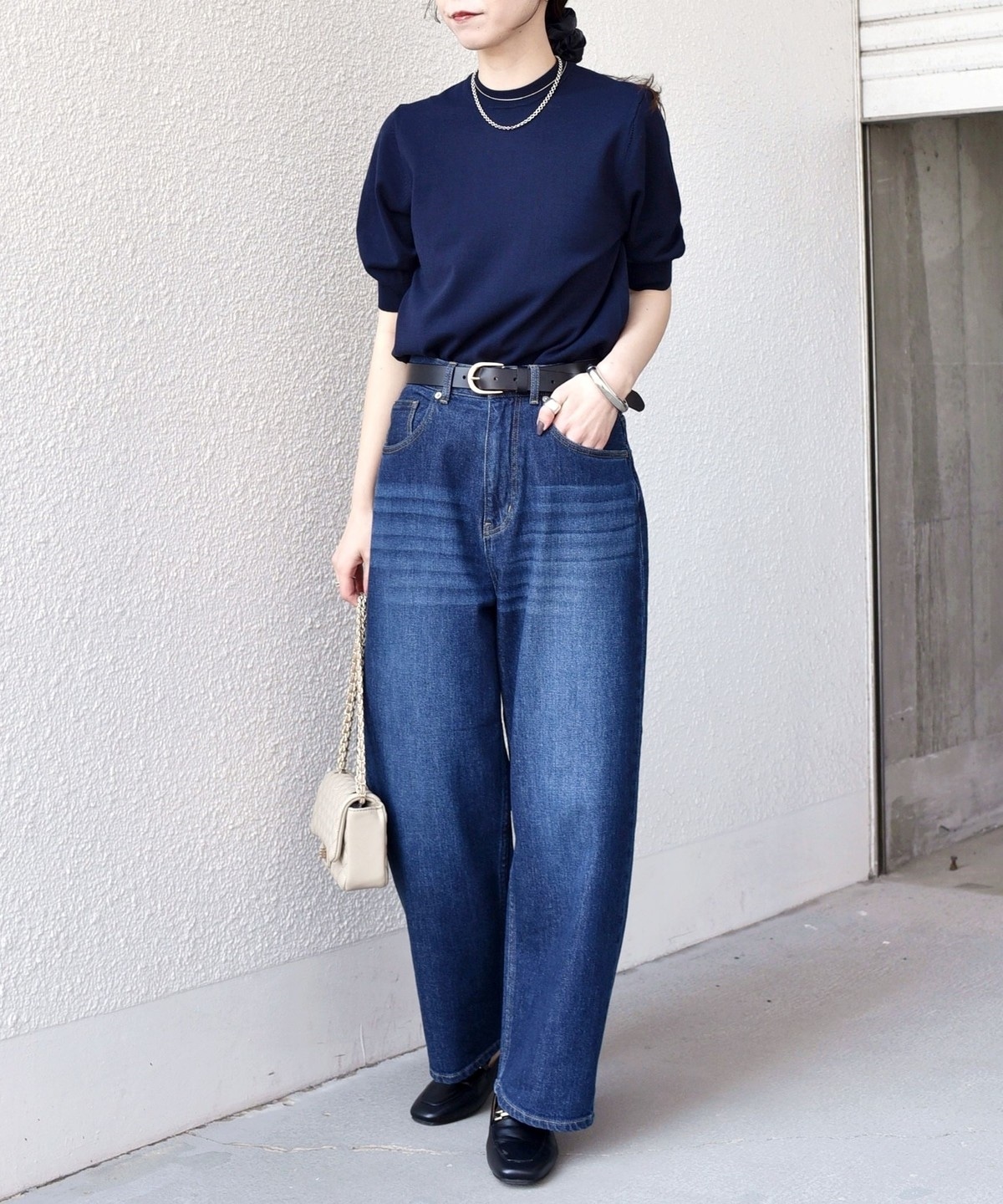 袖丈を肘のやや上に設定し、気になる二の腕を自然にカバーしながら、クラシカルで上品な印象に仕上げました。