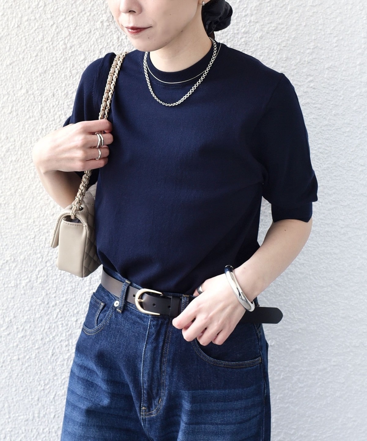 一枚着トップスとしての着用はもちろん、同素材のカーディガンとのアンサンブルや、ジャケットのインナーとしても活躍してくれる万能ニットです。
