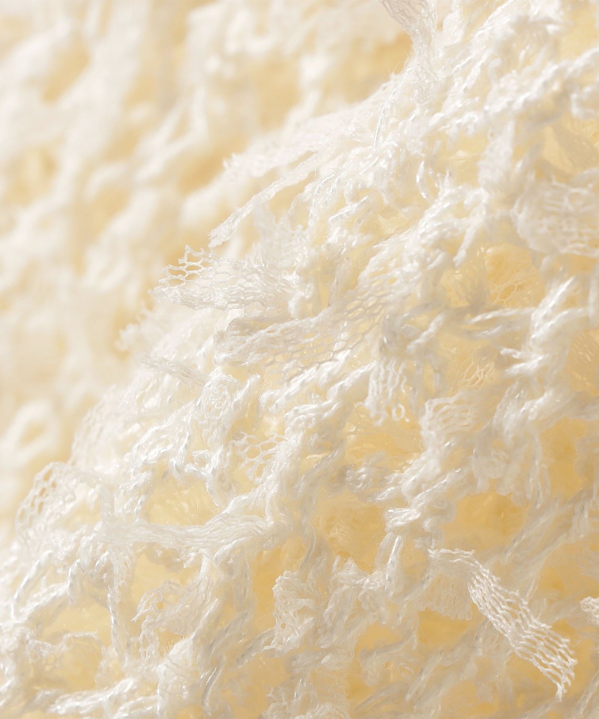 メッシュのような大きめの編地とややシャリ感のある肌触りで、通気性が良く涼しげに着用いただけます。