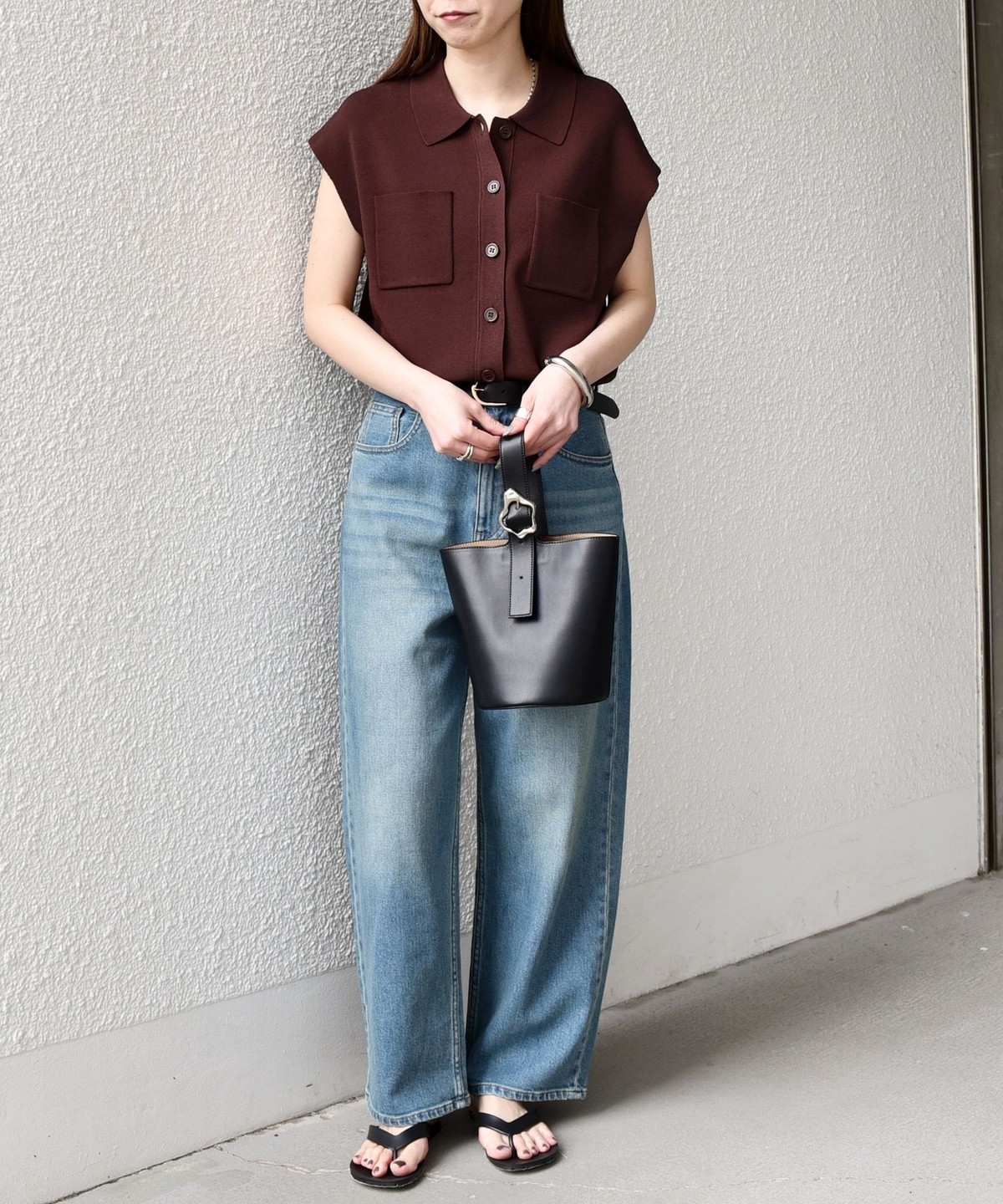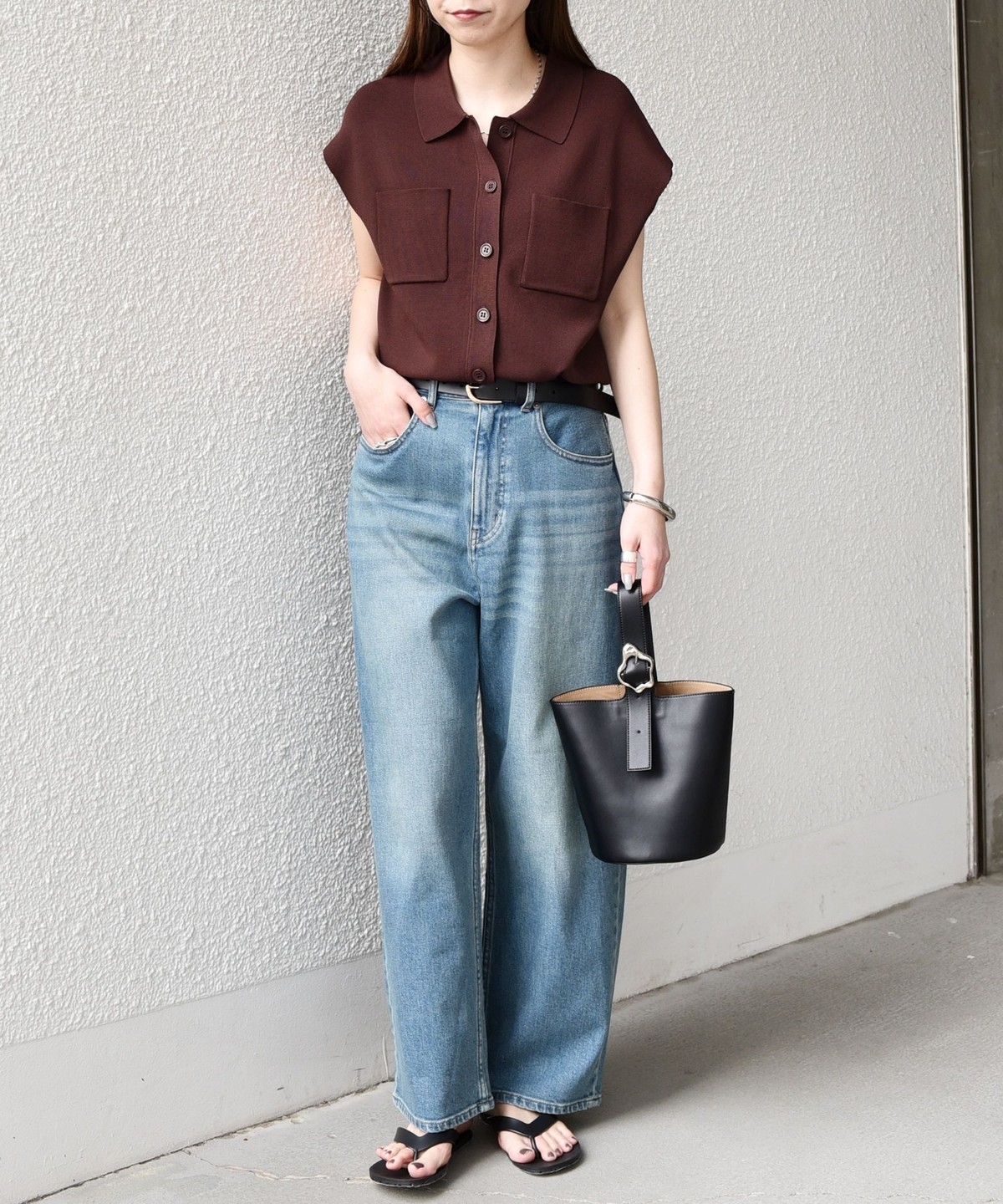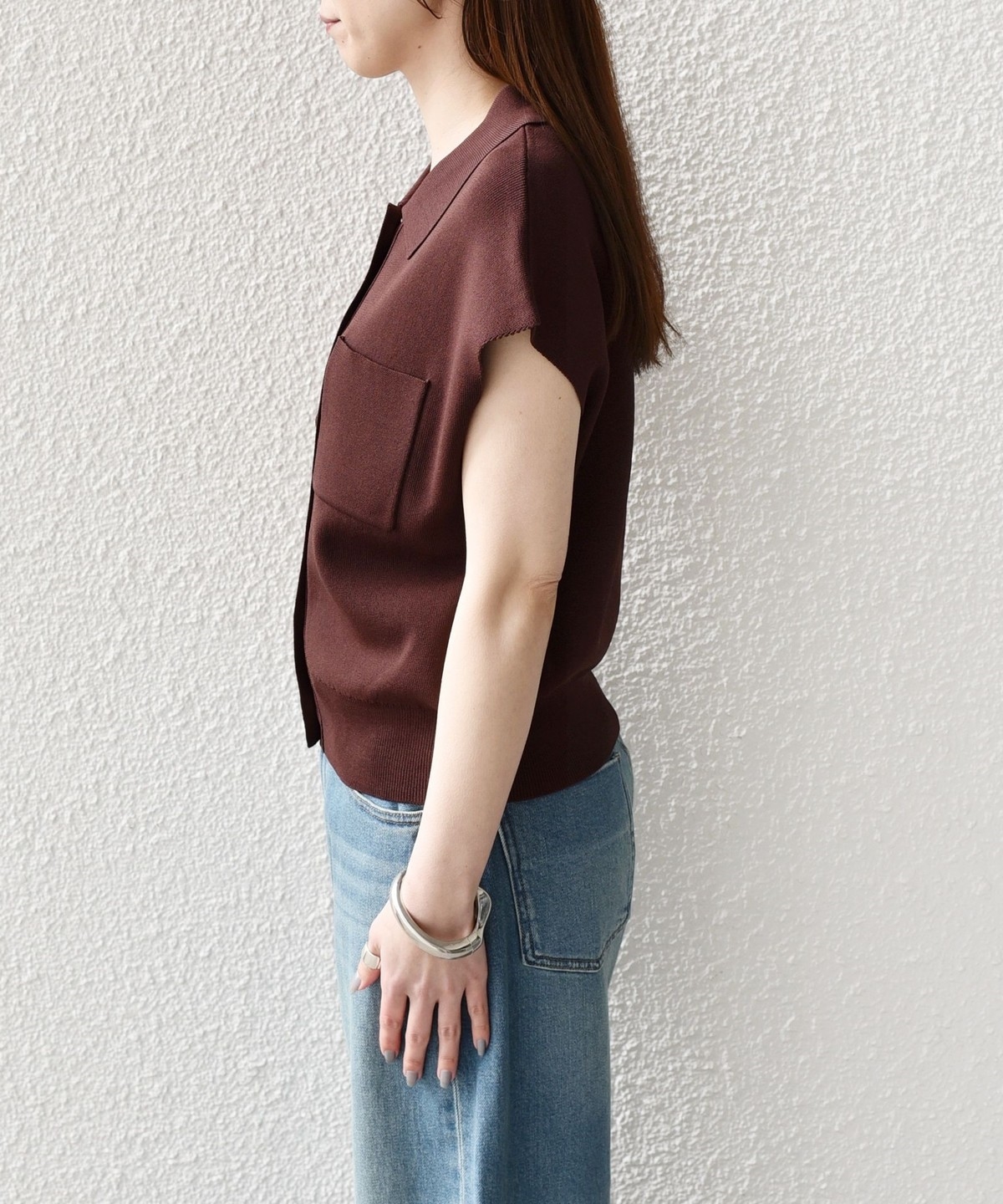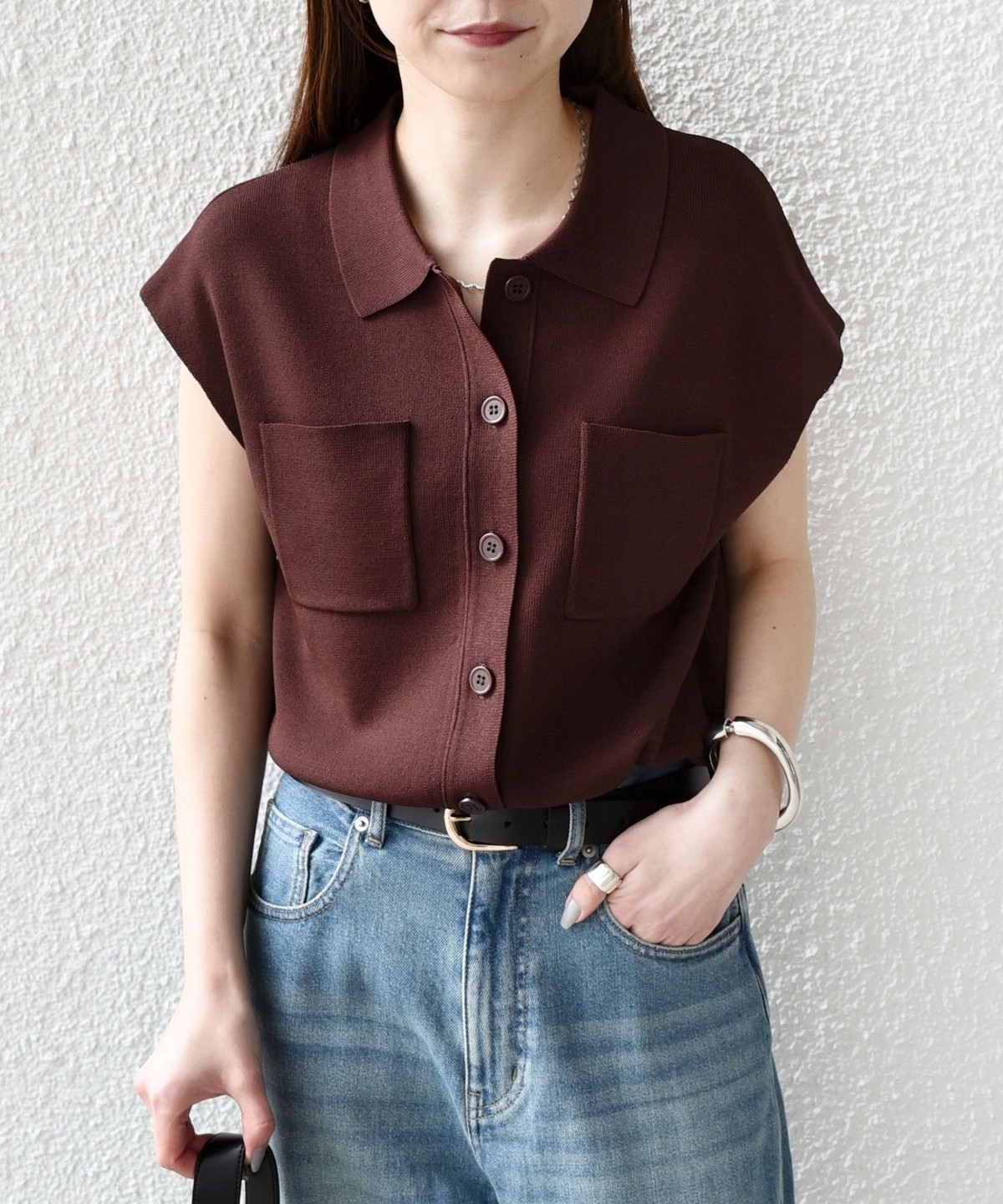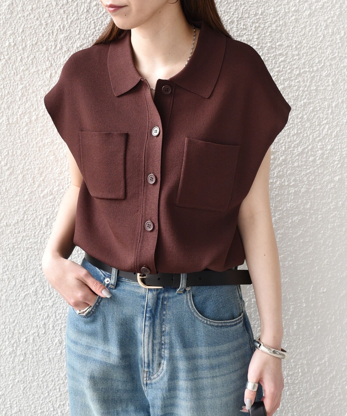 一枚着トップスとしてはもちろん、ベスト感覚でロンTなどとレイヤードしていただくのも◎
