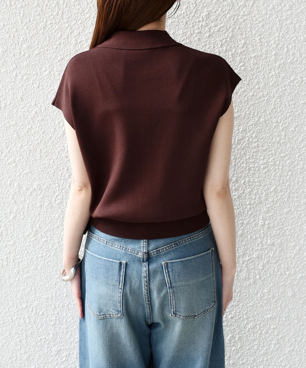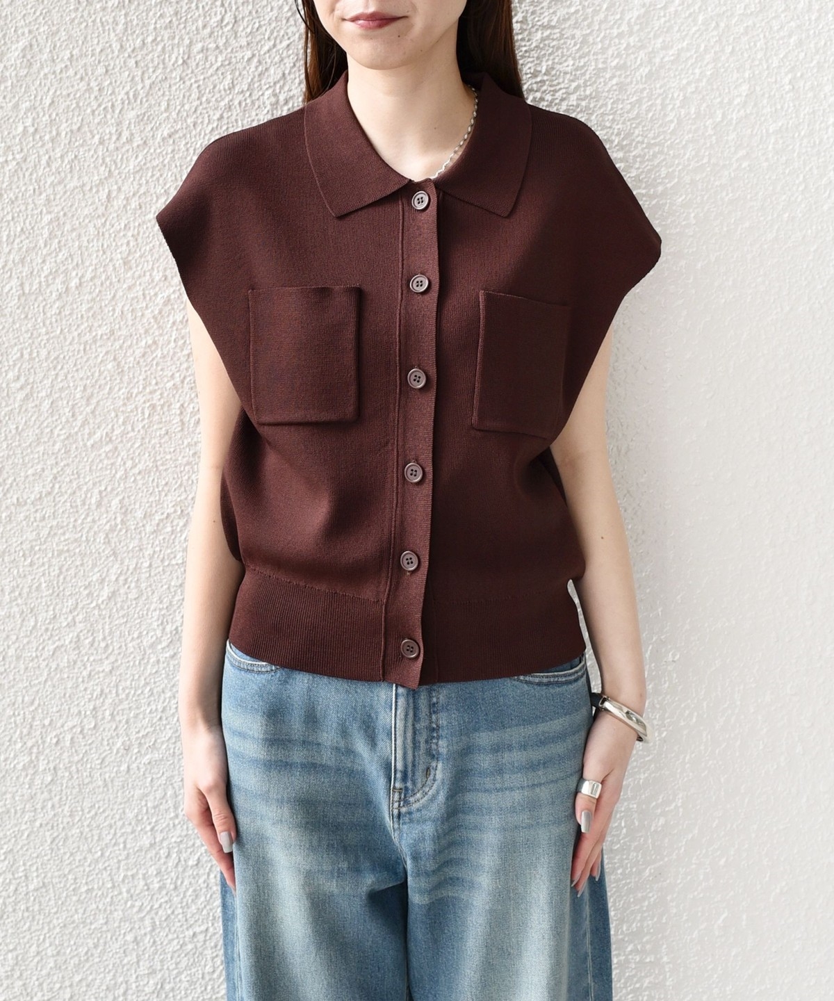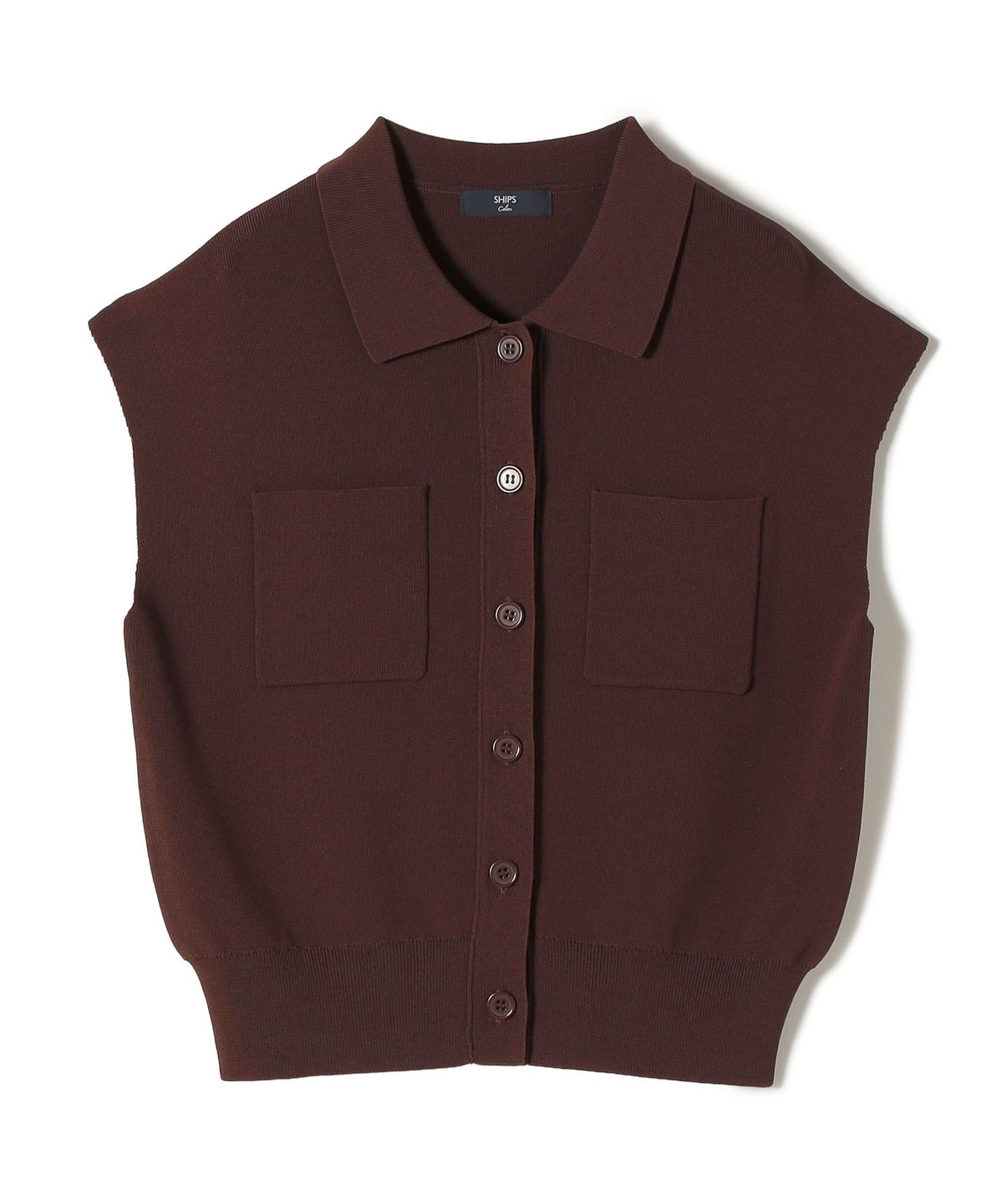 1. 《予約》SHIPS Colors:〈手洗い可能〉ポロ フレンチスリーブ ニット ベスト◆ ブラウン